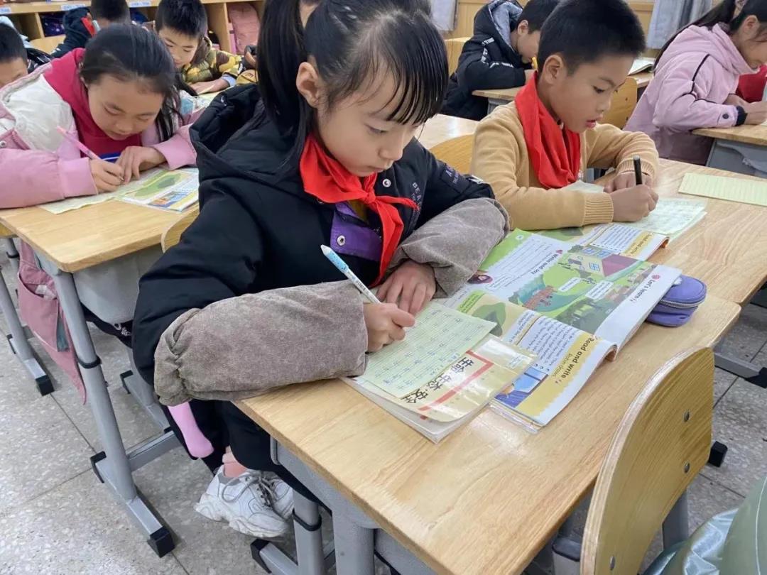 看!孩子们正在参与英语书写比赛,他们个个迅速进入状态,专注于每个字母的书写。