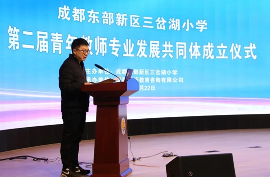 伴随着收获的喜悦,满怀着奋进的豪情,我们走过了不平凡的2020年,正信心百倍地走在充满生机的2021年。1月22日上午,三岔湖小学的青年教师们怀揣教育热忱欢聚环湖蓝色大厅,在教育心理学专家陈雪梅、学校领导和成都熠炬教育咨询有限公司领导的指导和见证下,举行了“东部新区三岔湖小学第二届青年教师专业化发展共同体(以下简称‘青共体’)”成立仪式。该仪式共三个部分:成立仪式、反思分享和专家讲座。