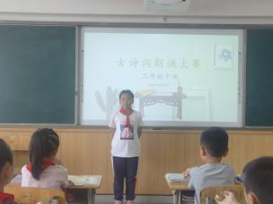 同学们热情高涨,精神饱满,用自己对诗文、课文内容的理解,诵读诠释经典文化的魅力。风格各异,或豪迈奔放,高亢激昂、或含蓄委婉,低声吟诵、或严谨大气、悲壮思念故乡。整个赛场如同一幅水墨画,犹如山涧中流出的一股清泉,时时荡涤着每一位听众者的心灵。