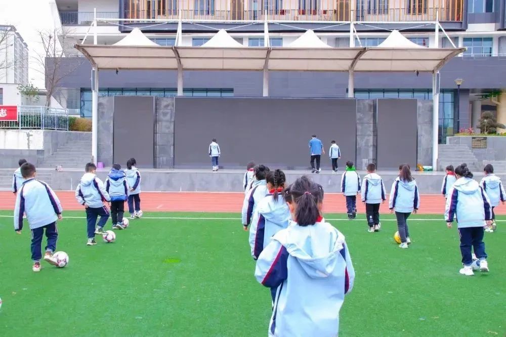 为了帮助孩子们进一步掌握足球运动技能,形成校园足球文化,提高同学们的足球兴趣,我校每班每周开设一节足球课,让同学们进一步享受足球运动带来的喜悦和快乐。体育老师孜孜不倦地示范、检查、纠正;同学们认认真真的训练,从一点不会,到略知一二,再到熟练掌握,孩子们乐在其中,阳光和自信洋溢整个校园。