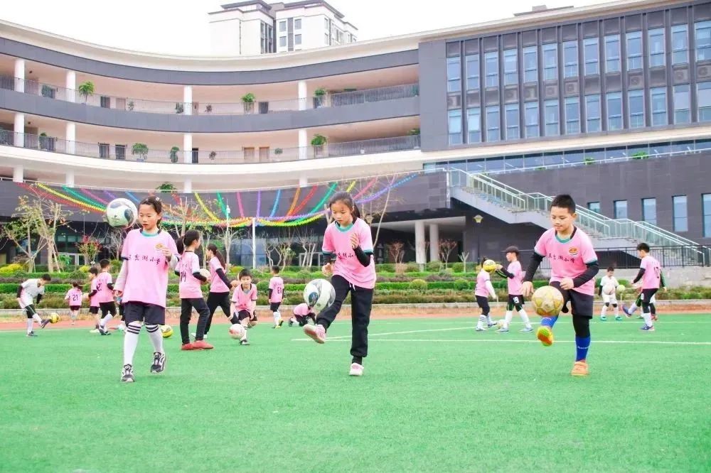 为了满足孩子们兴趣培养和特长发展的需要,发掘孩子们的运动天性,丰富孩子们的课外生活,学校自2018年起成立了足球社团,每天中午和下午的课后延时服务,定时组织学生进行练习。在教学生足球技能的同时,培养学生“足球精神”,发挥足球育人功能。足球在操场上飞舞,孩子们在训练中提高技能,在运动中增强体质,在奔跑中寻找童年的快乐。