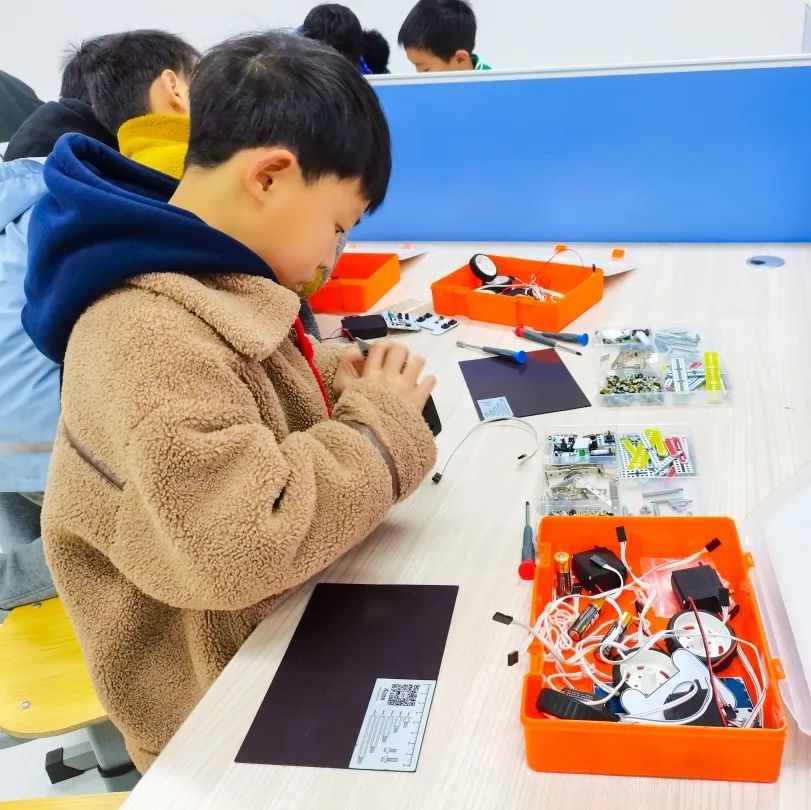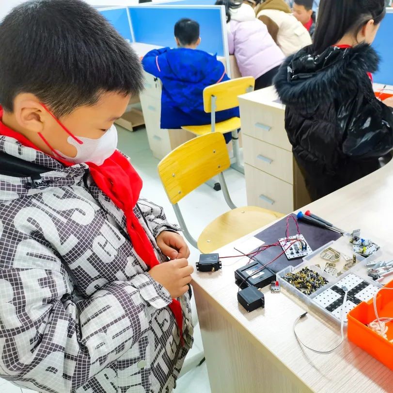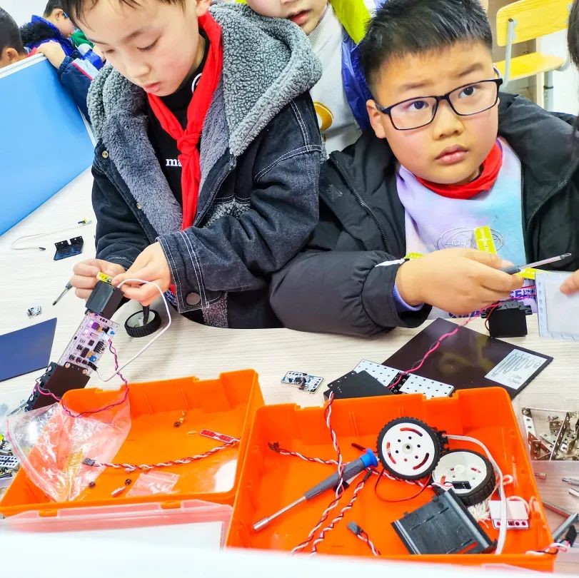 我校本期的机器人培训老师依然是深受孩子们喜爱的机器人培训专家——温老师。孩子们在老师的带领下专注的完成各项任务:从认识新的零部件开始,再学习正确使用各种工具以及快速组装机器人的方法。孩子们在温老师的细心指导下,认真钻研,不断改进,装了又拆,拆了又装,反复琢磨,不断改进,最后成功制作出了可遥控带闪灯的机器车精巧的机器车。每个孩子们的脸上都洋溢着成功的喜悦。在此次机器人培训活动中,学生收获满满,动手实践获取知识,依据功能编写程序,通过校验调整思路。同时,孩子们也在活动中也学会了精诚团结、探索创新、坚持不懈。