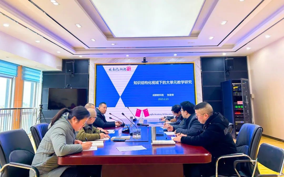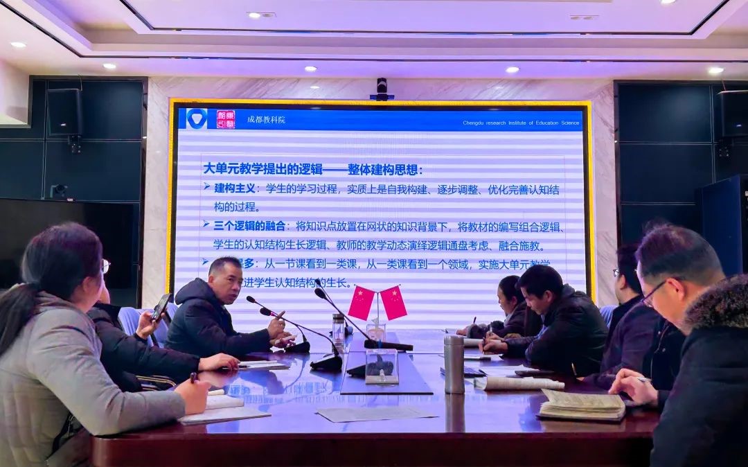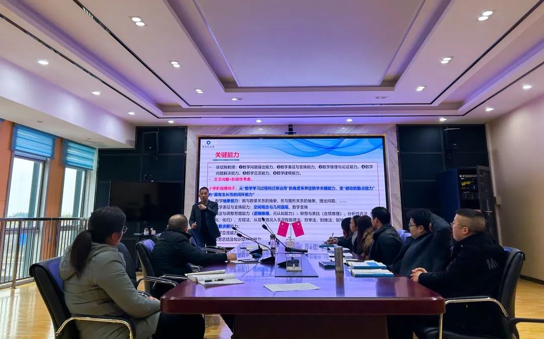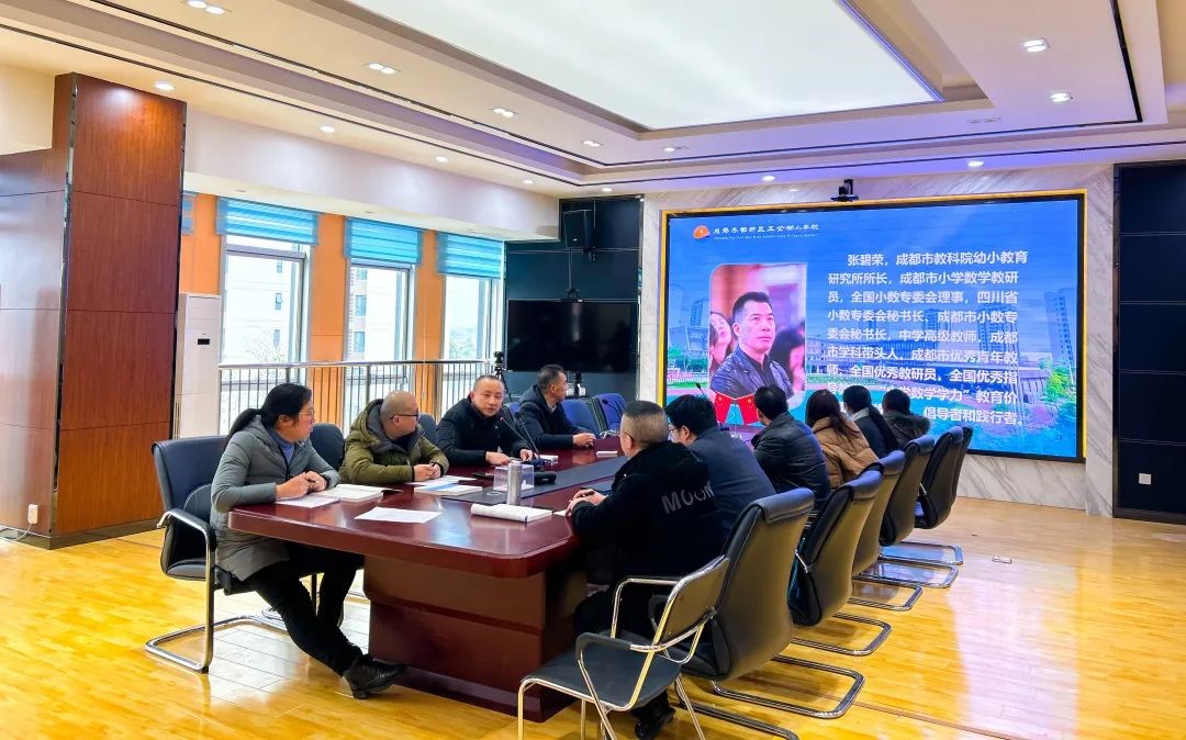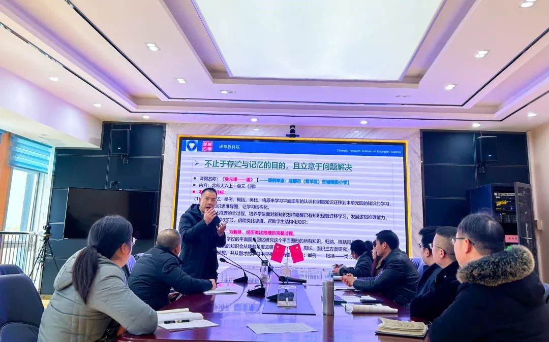 课程标准是导航仪,能明确教学目标和方向。为更好学习贯彻《义务教育数学课程标准(2022年版)》,把握数学新课标的实质和新变化,切实把新课标的教学理念和基本要求落实到课堂教学中。2月23日,学校有幸邀请到了成都市教科院幼小教育研究所所长、成都市小学数学教研员张碧荣老师,为全体数学教师作《知识结构化视域下的大单元教学研究》专题培训。