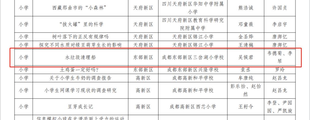 喜 报——三岔湖小学校在成都市第38届科技创新大赛中喜获佳绩