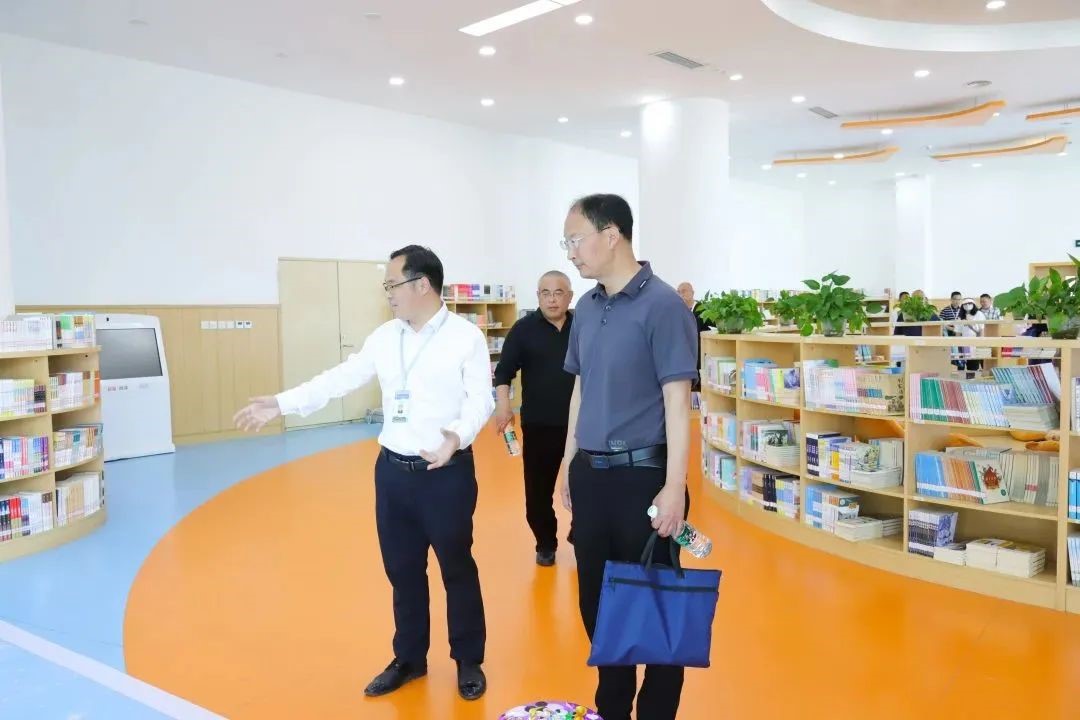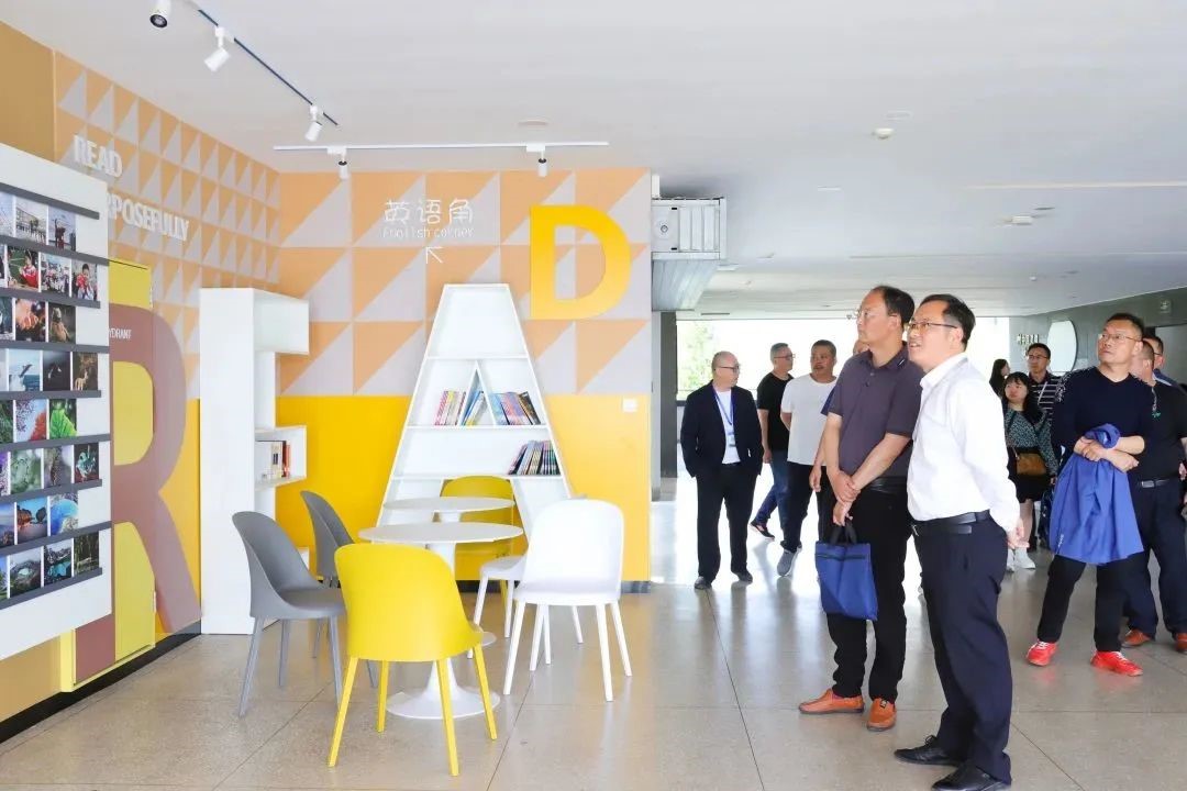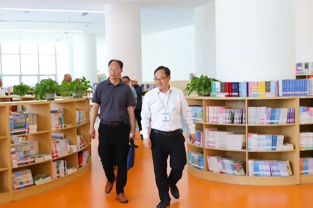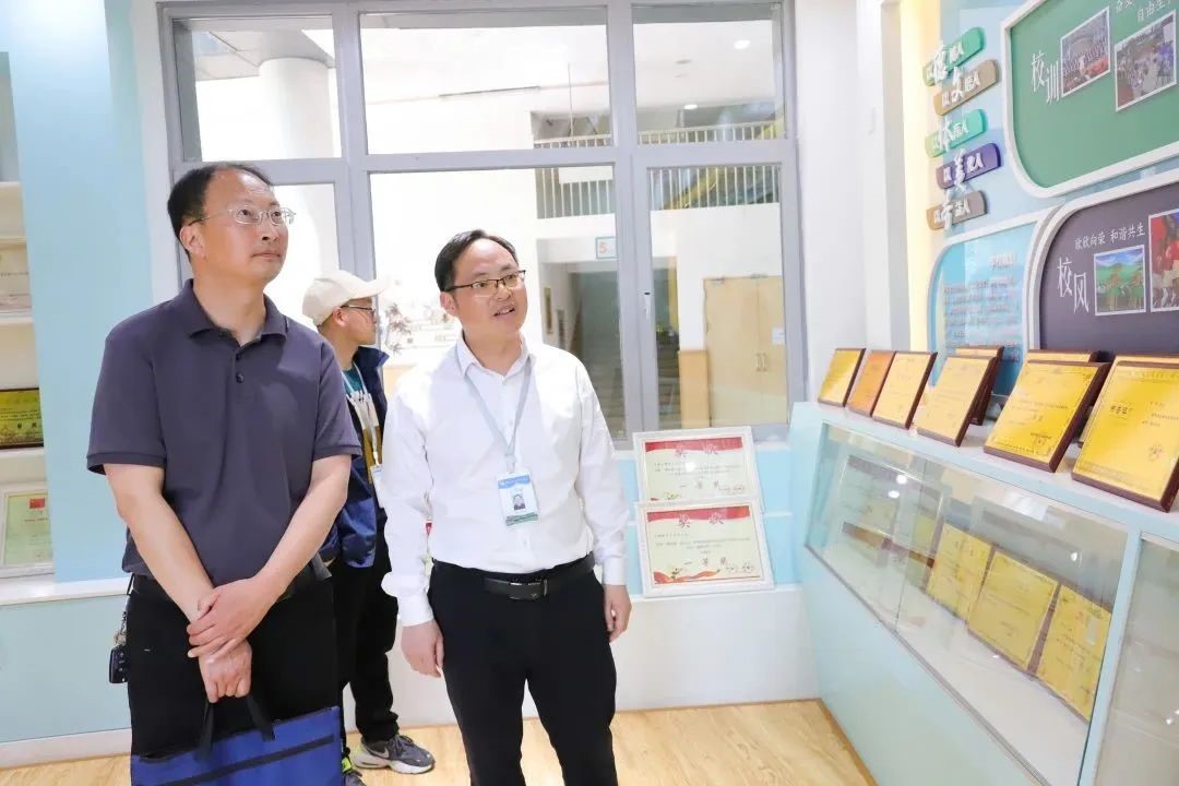 首先,王校长一行人在汪校长的带领下依次参观了我校的图书室、德育展示厅、环湖蓝色大厅、荣誉室、校园文化建设等。参观的老师们对我校高端大气的教学楼、应有尽有的设备设施、浓厚的育人氛围和精细化的学校管理赞叹不已。