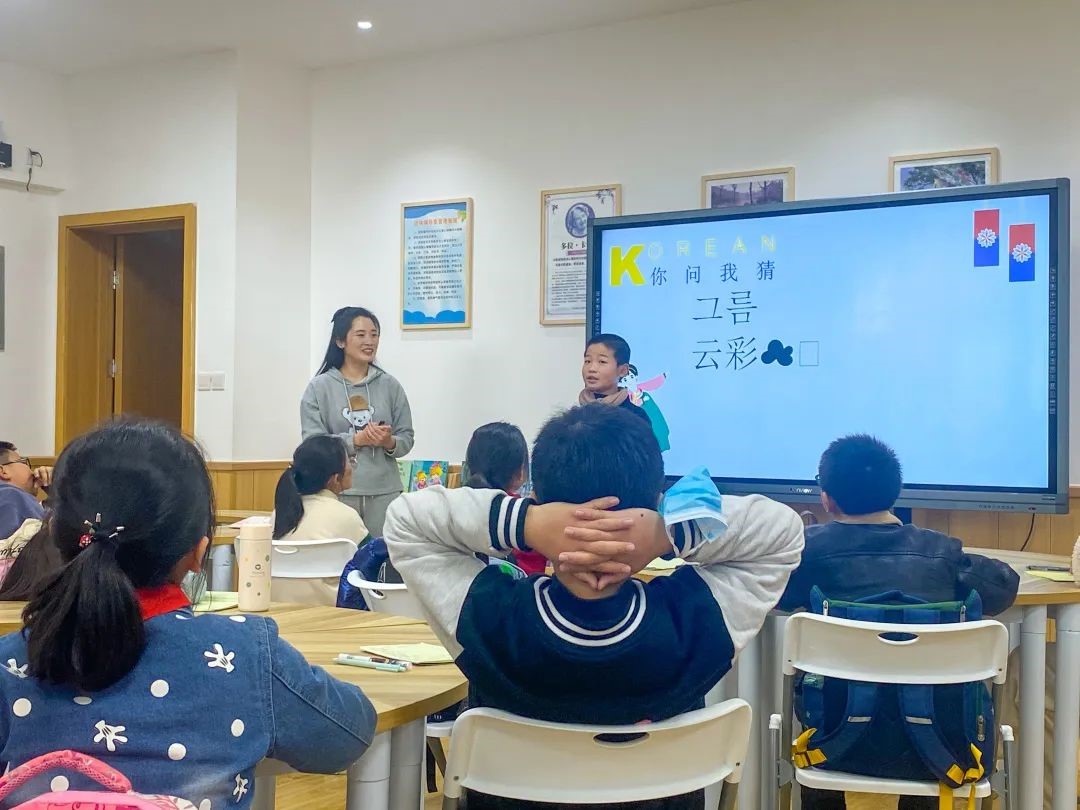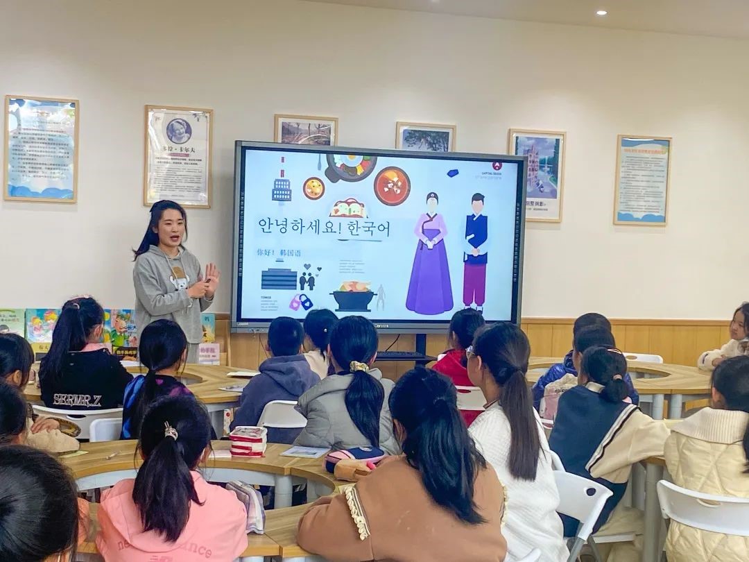 语言的背后是文化。韩语社团课既让同学们领略了不同的文化,开拓了视野,又丰富了学校社团活动,同时也进一步拓展了课后服务的深度和广度,深受师生、家长好评。