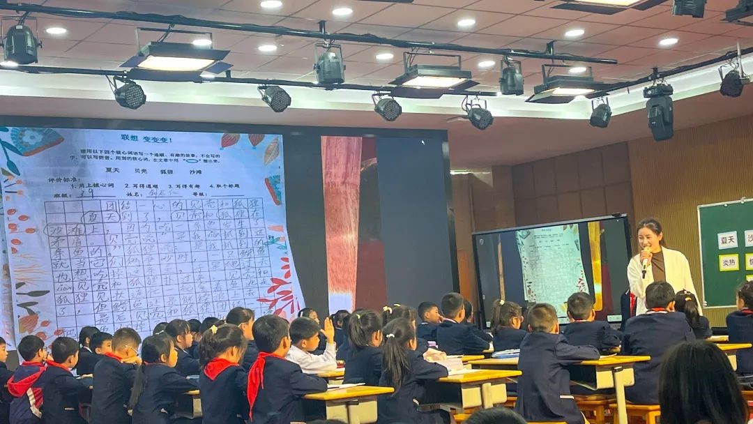 随后,王梅鲜老师带来了《联想变变变》。王老师以大队部红领巾广播站征稿活动激发学生的学习兴趣,从联想绘画、联想说话到联想写话,给学生搭建了联想的支架,教给学生学习方法。王老师灵活运用学生自评,实现了教-学-评一致性,充分体现了学生的学习主体性。
