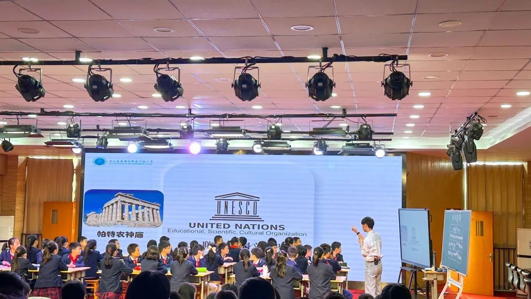 接着,高新实小教科室副主任苏曦带来了讲座《让世界看见我们 让我们走向世界》。苏老师从崭新的时代契机、扎实的专题研训、丰硕的智慧果实、未来走向可期这四个方面向我们介绍了实小国际理解教育的成果及规划