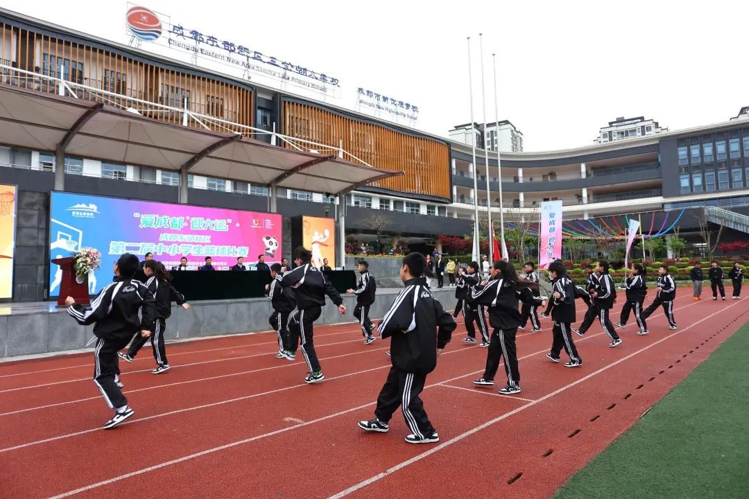 4月6日,成都东部新区第二届中小学生篮球比赛开幕式在三岔湖小学校高小部操场上隆重举行。首先,三岔湖小学校带来的暖场舞《霹雳旋风》,活力四射,博得了到场领导和参加队员的热烈掌声。