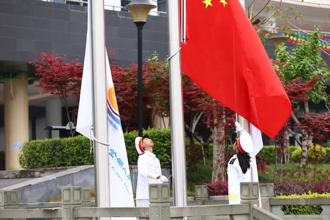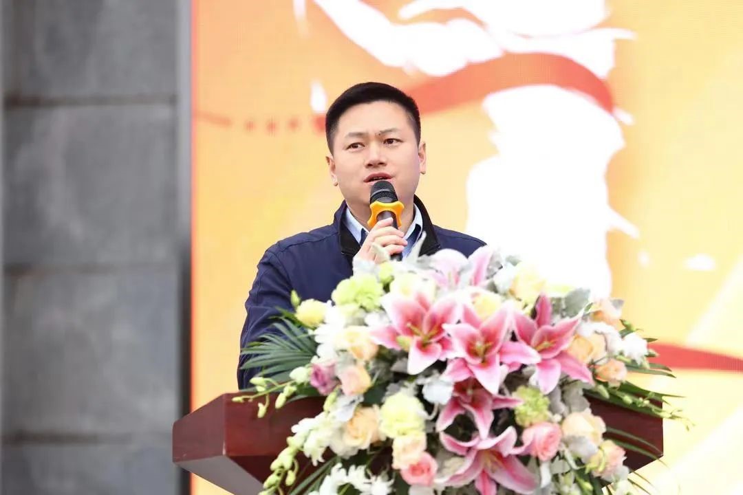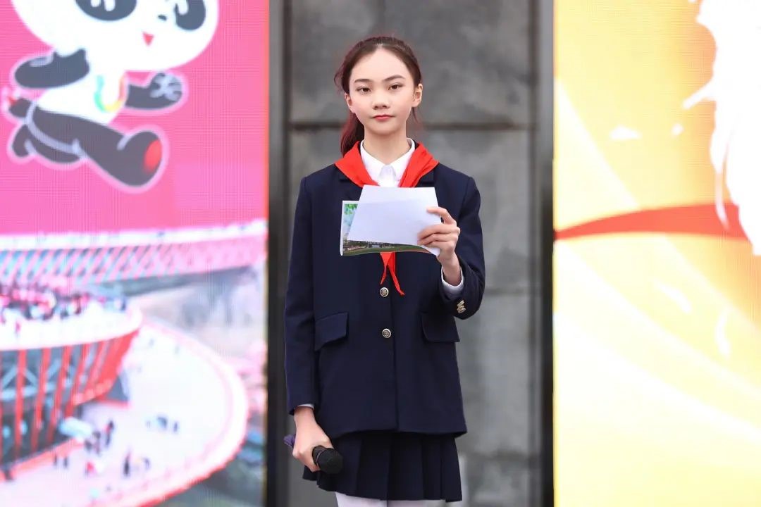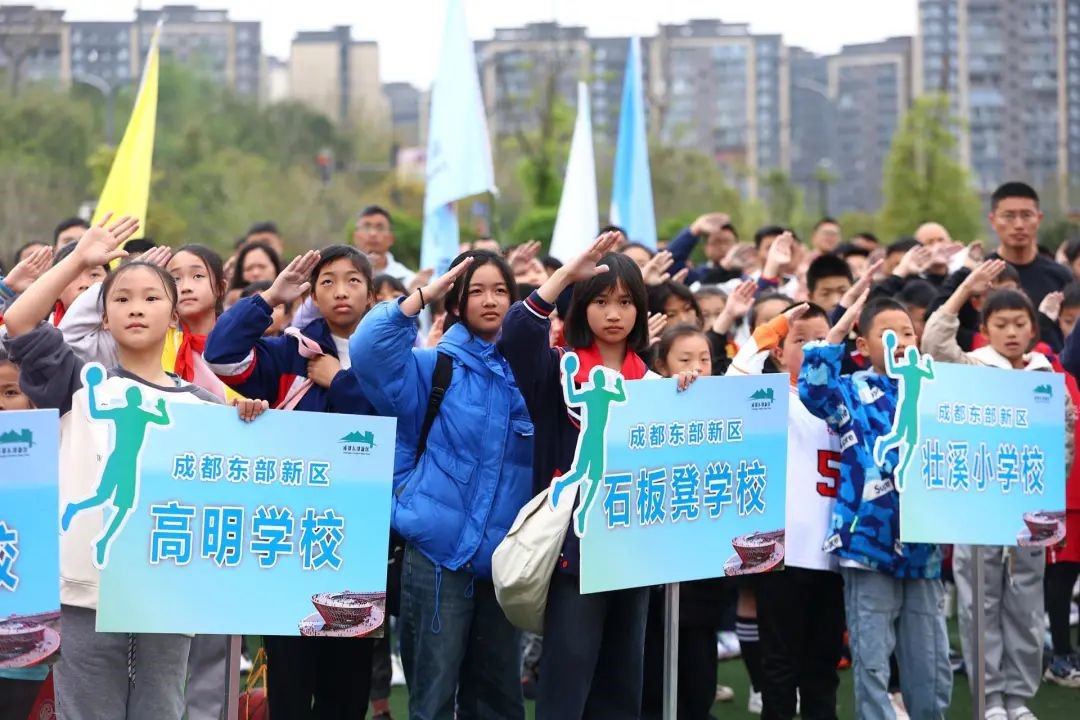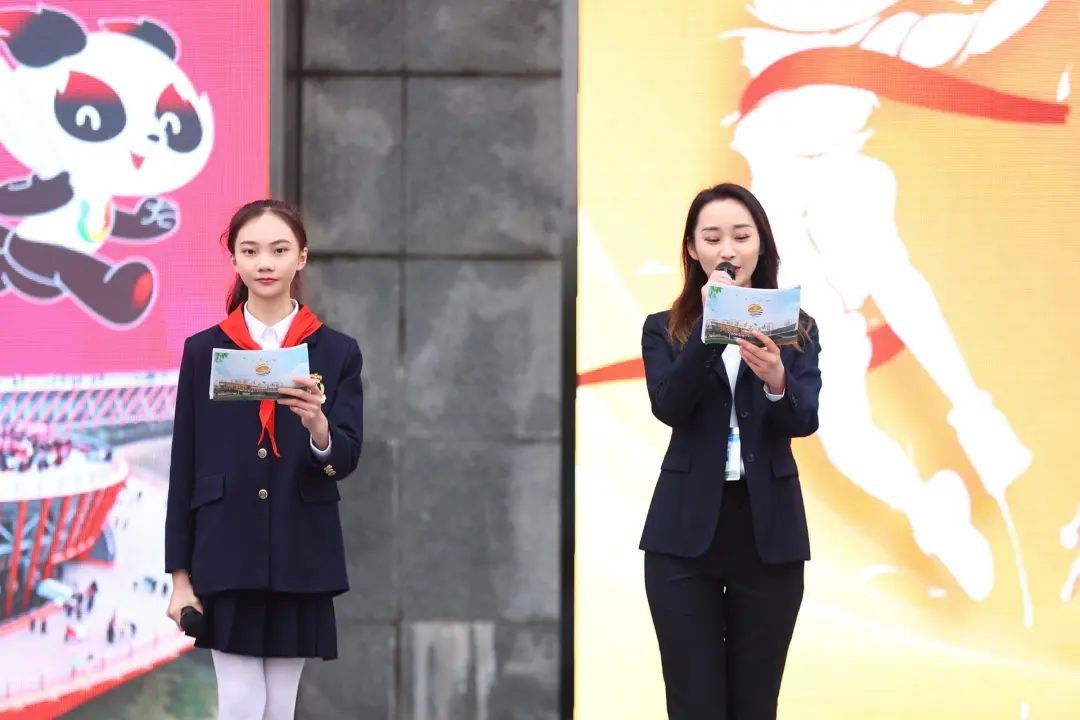 在升国旗之后,成都东部新区管理委员会文化旅游体育局教育处中小学教育组组长李超致辞。