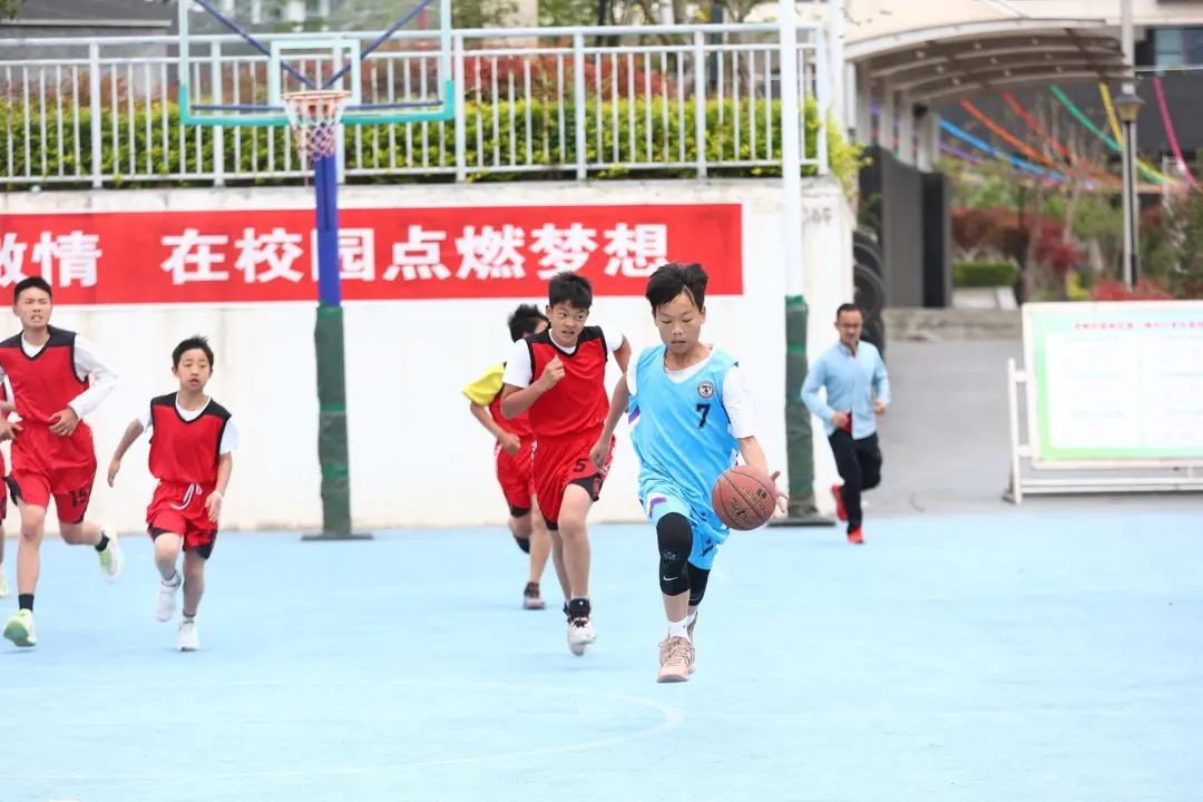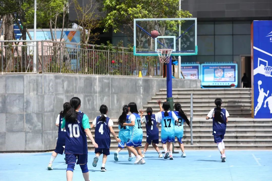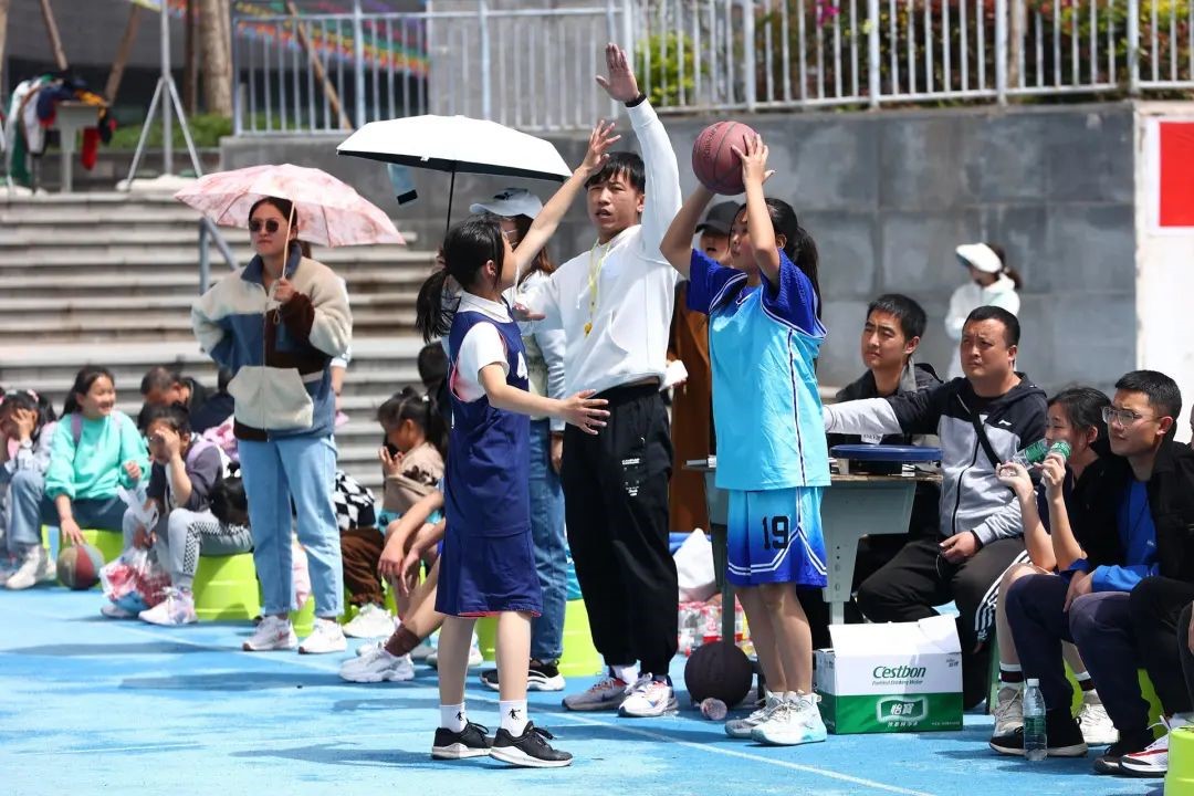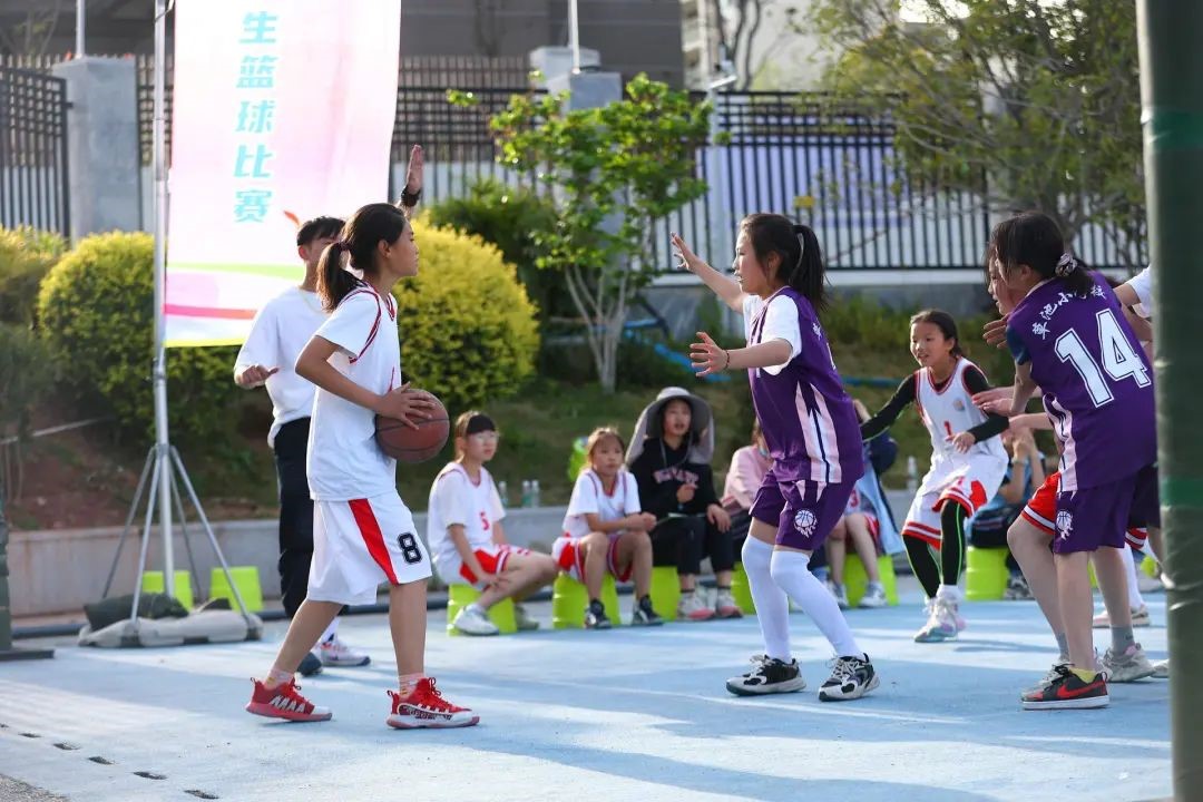 场下教练斗智斗勇,精心安排战术;球场外啦啦队员断声力喊,为各自球队的队员加油鼓气。大家各个热情洋溢,摩拳擦掌,此起彼伏的助威声,进球后的尖叫声,胜利后的欢呼声,声声雀跃。一次次跃起的篮球,一个个欢腾的球场,一群朝气蓬勃的少年,让比赛场人气爆棚,活力四射。