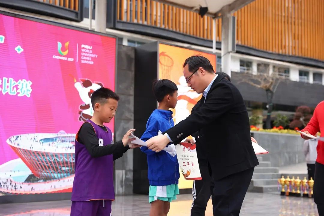 追逐四月的和风,沐浴春日的阳光,在这样一个朝气蓬勃的季节里,成都东部新区第二届中小学的小学组篮球比赛在三岔湖小学校成功举行。经过两天鏖战,三岔湖小学校获得小学乙组冠军,小学甲组男子和小学甲组女子亚军。