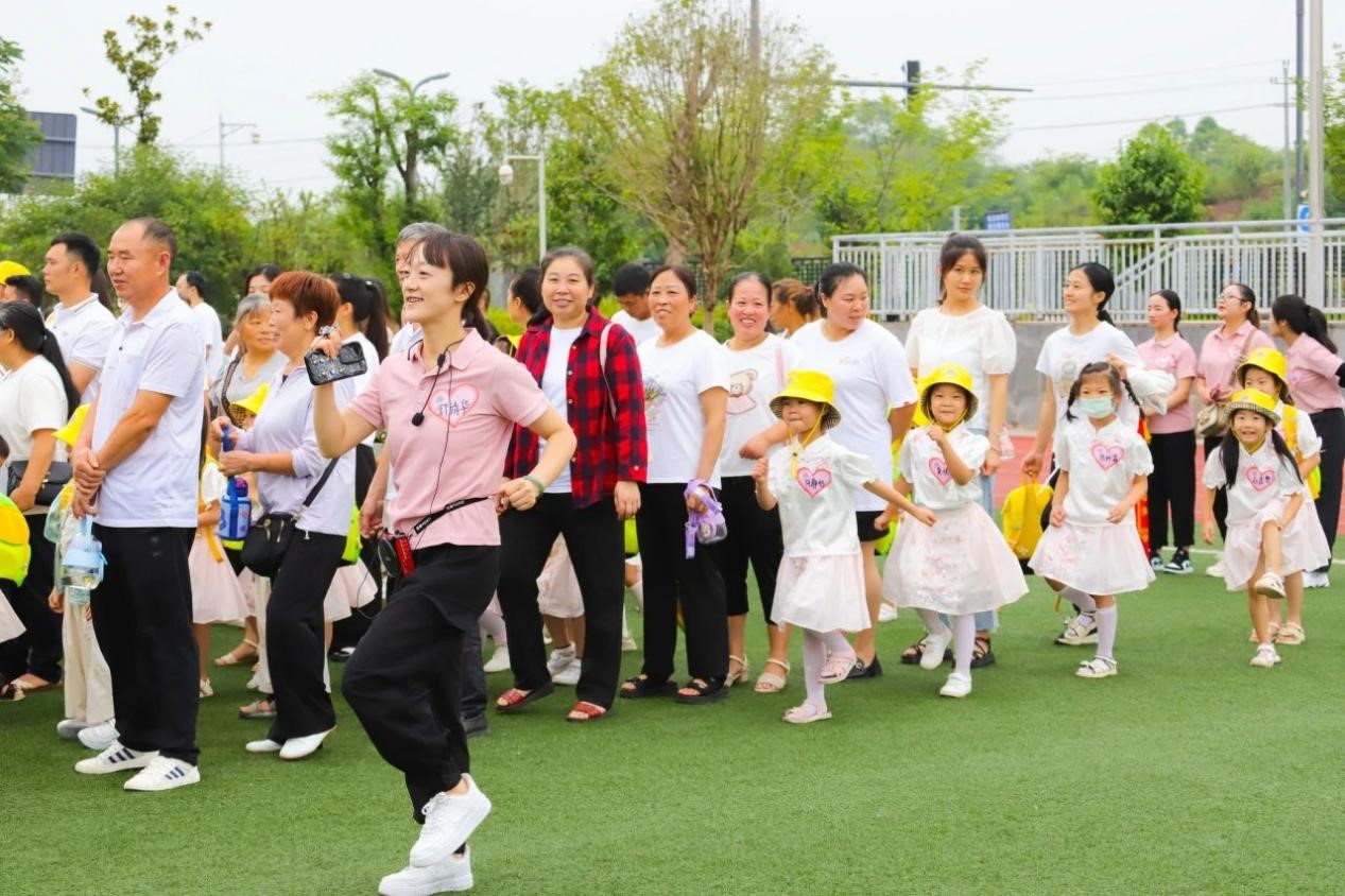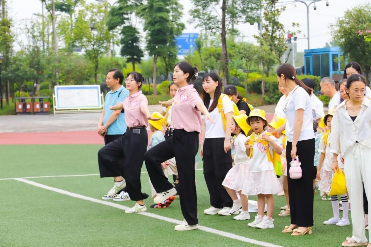 看着大哥哥、大姐姐们整齐划一的动作,幼儿园的小朋友们也都忍不住纷纷跃跃欲试。