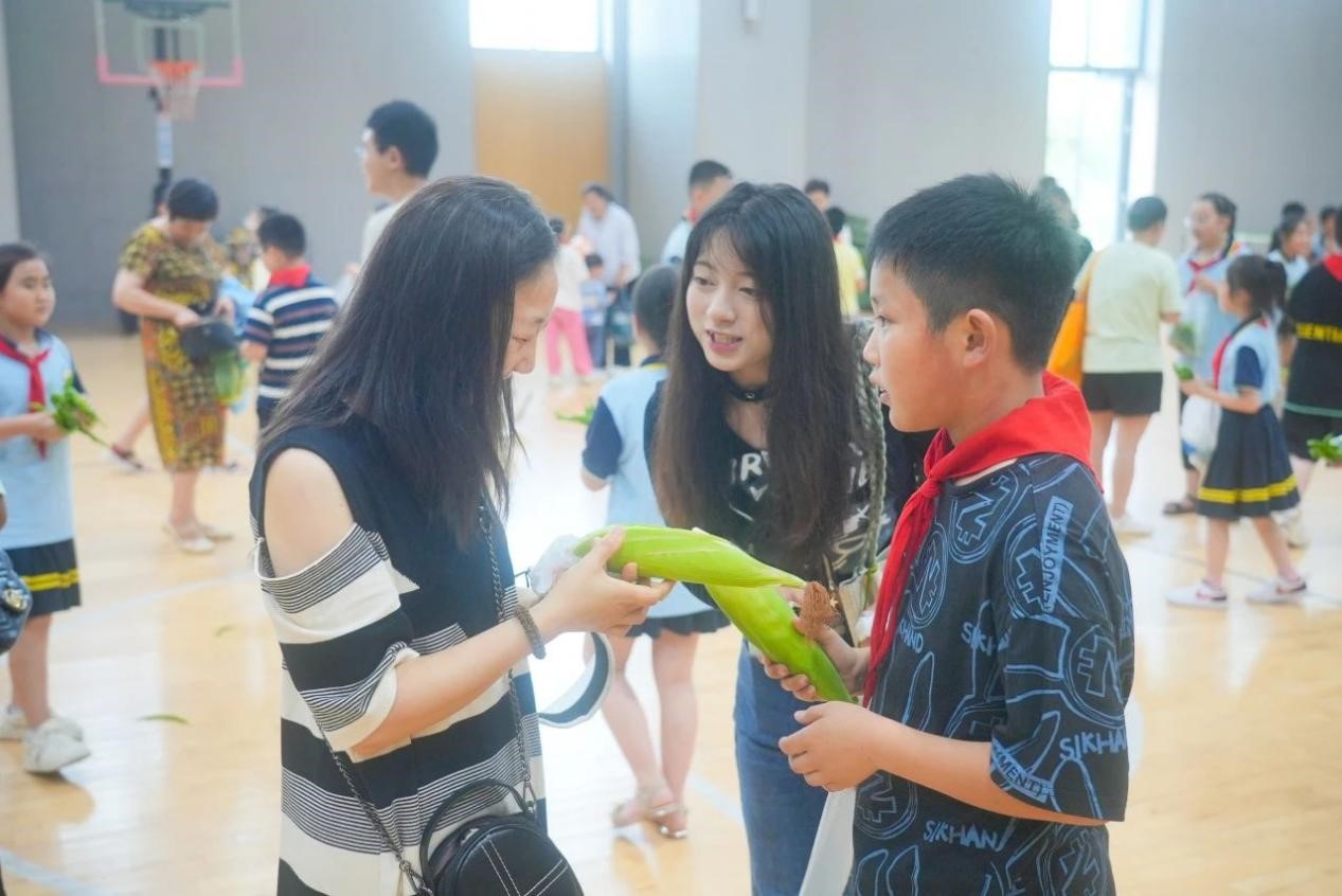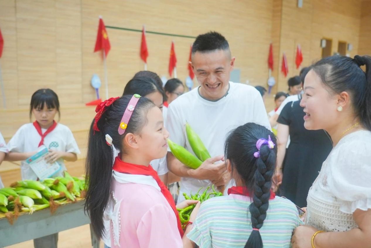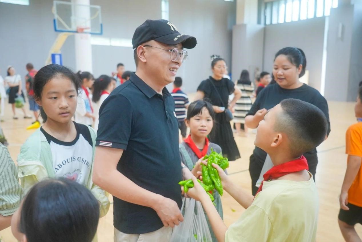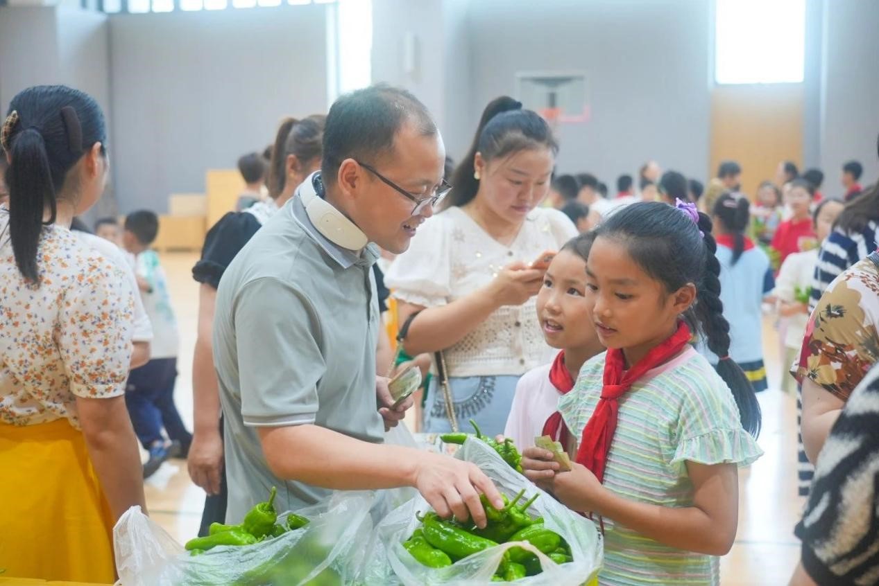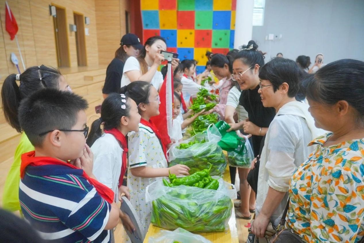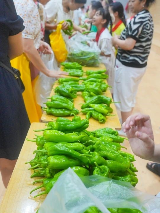 采摘完毕后,学校特别邀请了部分同学的家长,以班级为单位,在学校室内篮球场举办了一场别开生面的义卖活动。学生们兴趣盎然,纷纷展示着自己的劳动成果,向家长们介绍这些蔬菜的种植过程和自己的心得。现场热闹非凡,孩子们的欢笑声和家长的鼓励声此起彼伏。
