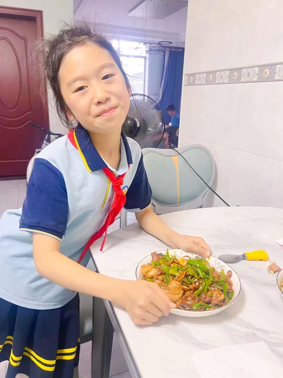 活动结束后,孩子们带着自己采摘的蔬菜回到了家中。在家长的指导下,他们开始了烹饪的准备工作。洗菜、切菜、炒菜、调味,每一个步骤都充满了孩子们的热情和创意。不一会儿,一道道色香味俱佳的菜品就摆上了餐桌。孩子们自豪地向家人展示着自己的成果,分享着在农场的采摘趣事和义卖心得。