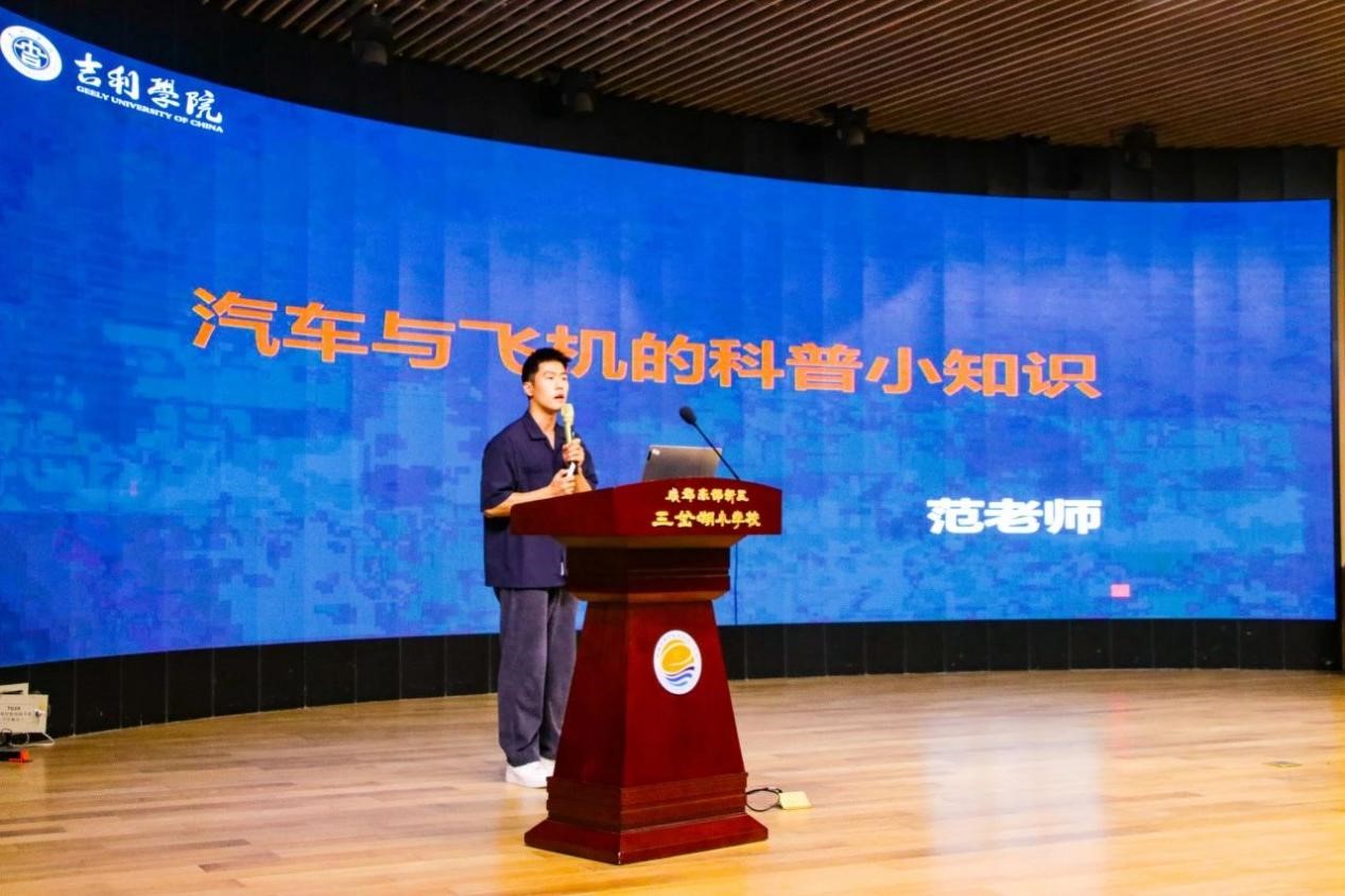 吉利学院的范宇航老师给同学们带来了科普讲座《汽车与飞机的科普小知识》,活动在轻松的氛围中开启。范老师以提问的方式,激发孩子们的好奇心,让孩子们切实的感受到了汽车和飞机从无到有的变化,也使孩子们感受到了时代的快速发展,培养了孩子们的科学意识和创新思维。