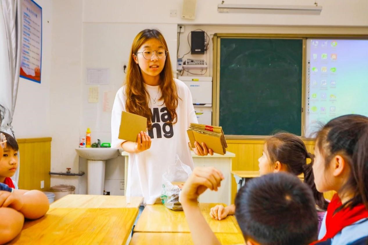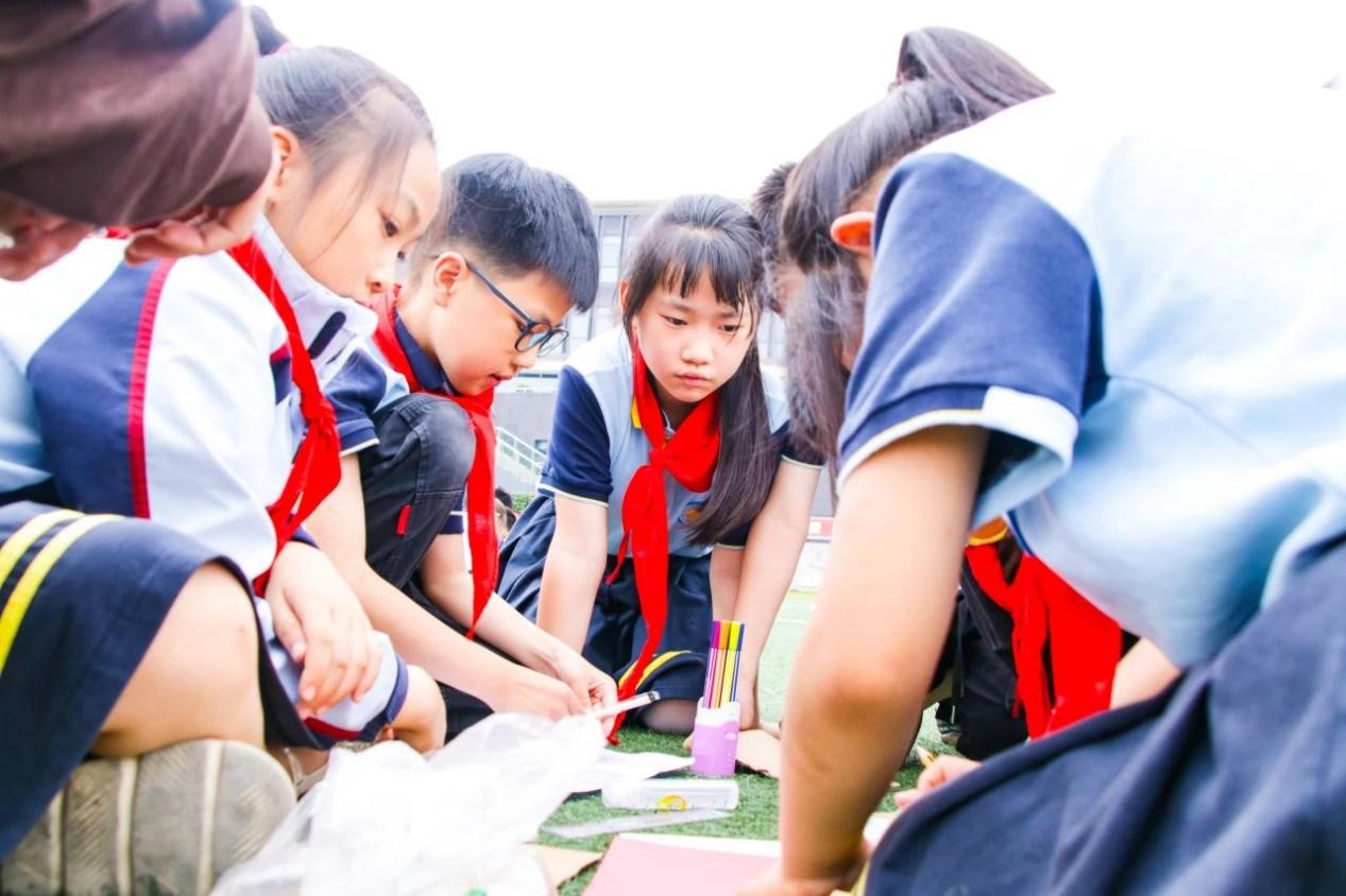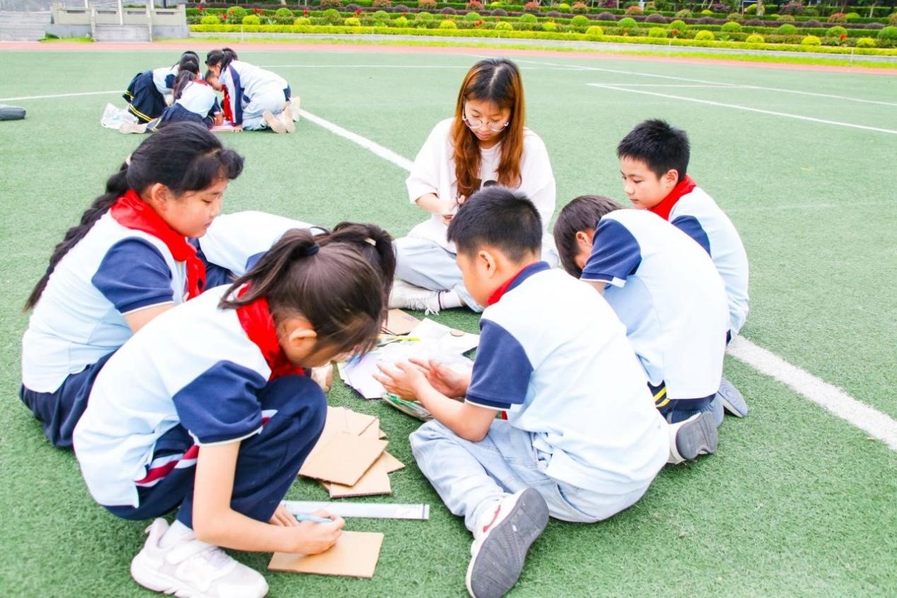 中场休息后,七彩科普小分队带领3.8班的同学分组进行“太阳能板汽车”的制作。在小分队成员的悉心指导下,孩子们从零开始,一步步绘图、裁剪、拼接、装饰,全神贯注地沉浸在自己对汽车的期待中。