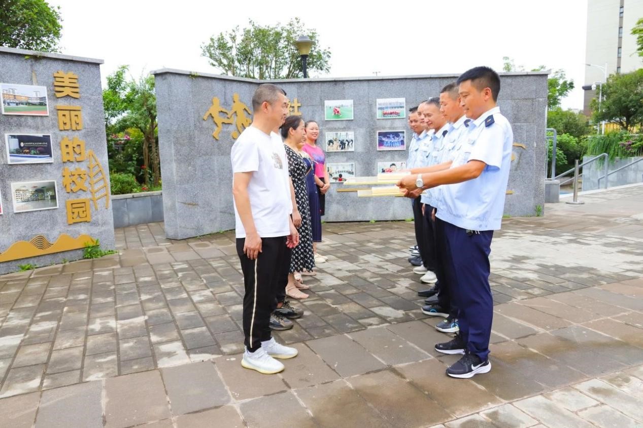 家长代表、六年级九班学生汤双安家长为公交车司机献上书着“服务学生 精致耐心”“率先垂范 社会标杆”等赞誉之词的锦旗,充分体现了家长们对公交车司机的认可和肯定。