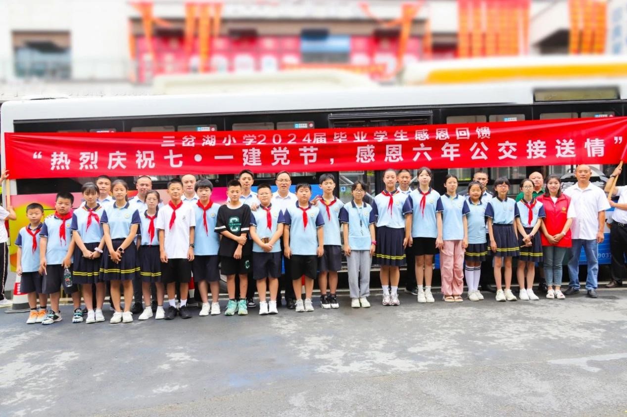 为感谢成都市公交集团天府公司无论天晴还是下雨,无论严寒还是酷暑,都初心不改,为学生的平安出行保驾护航,进一步增强学生的感恩意识,7月1日,成都东部新区三岔湖小学校2024届9班毕业学生家长自发组织开展了感恩公交车师傅“风雨不改 六年接送”主题活动。成都市公交集团天府公司部分公交车师傅,三岔湖小学校书记、校长汪辉勇,副书记何彬等领导及2024届毕业班部分家长、学生参加了此次活动。