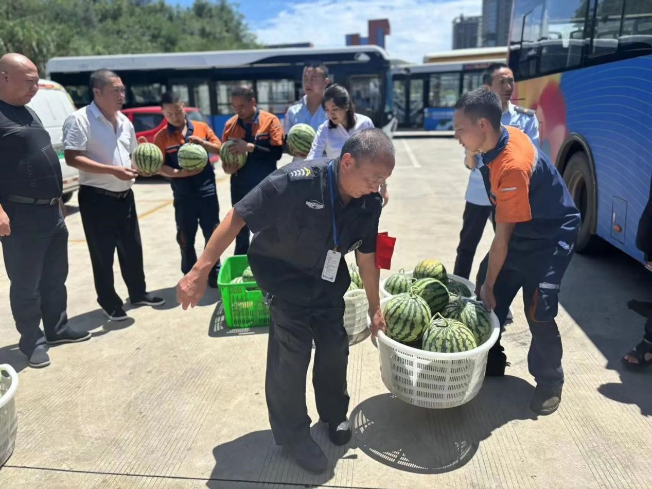 为了感谢公交车师傅的辛勤付出,六年级九班学生汤双安的家长还特意购买了一挑西瓜送至公司,表达他的深切谢意。驾驶员师傅们吃在嘴里,暖在心里,感动不已。