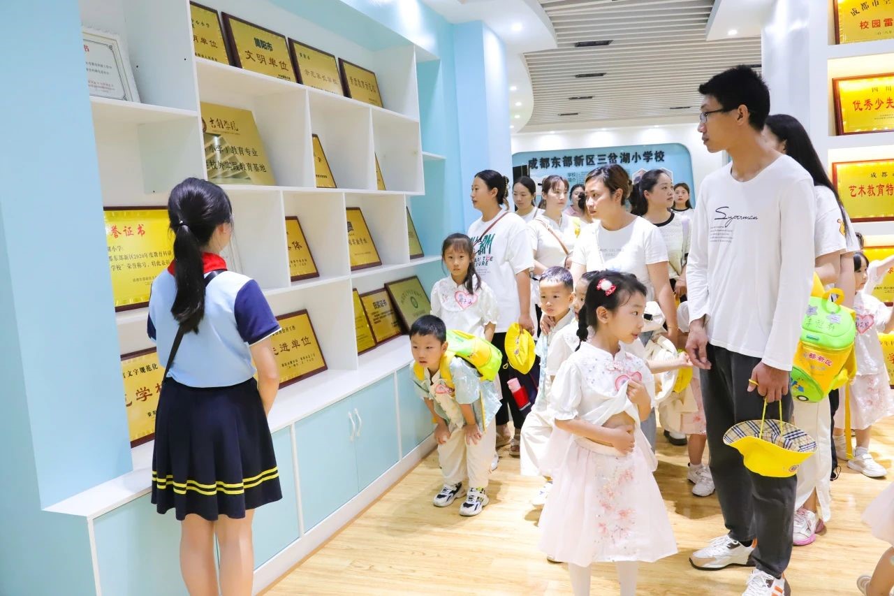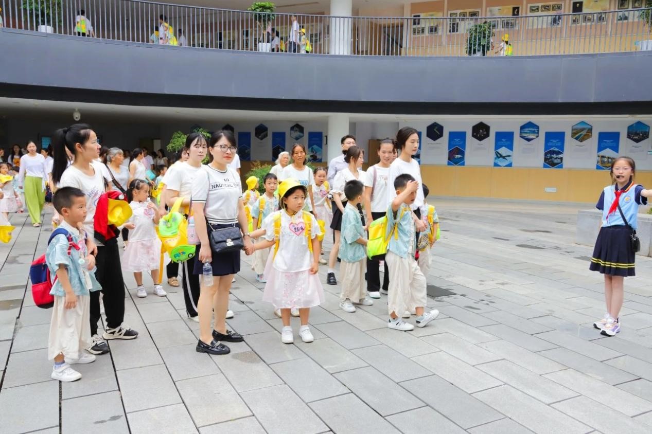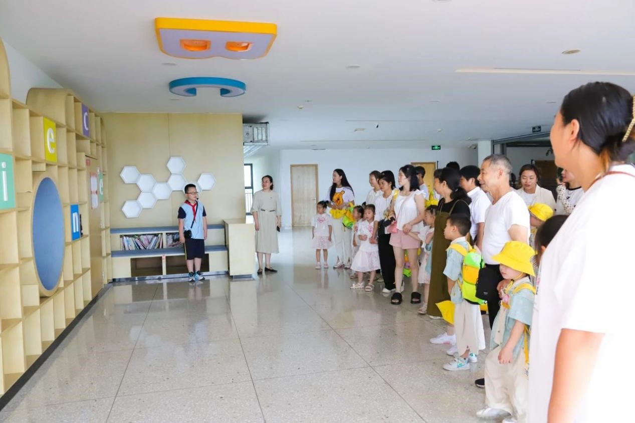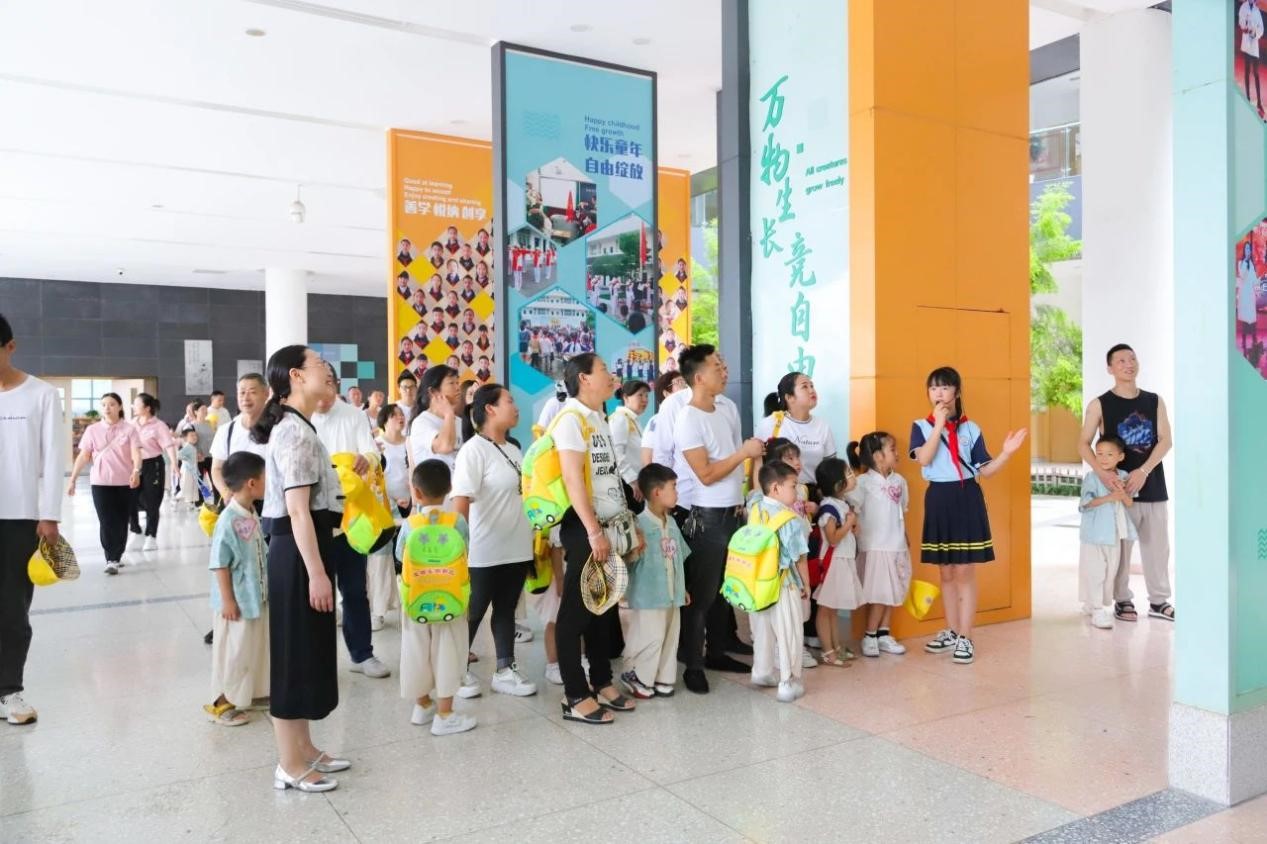 在我校老师的带领下,家长和孩子们手拉着手认真地观察着每个角落,宽阔的足球场、高大的教学楼、文化长廊、阅读区、作品展区、劳动实践基地,目光所及之处都让孩子们感到新奇而充满吸引力,他们用一双双发亮的眼睛,探访着学校的每一个角落。
