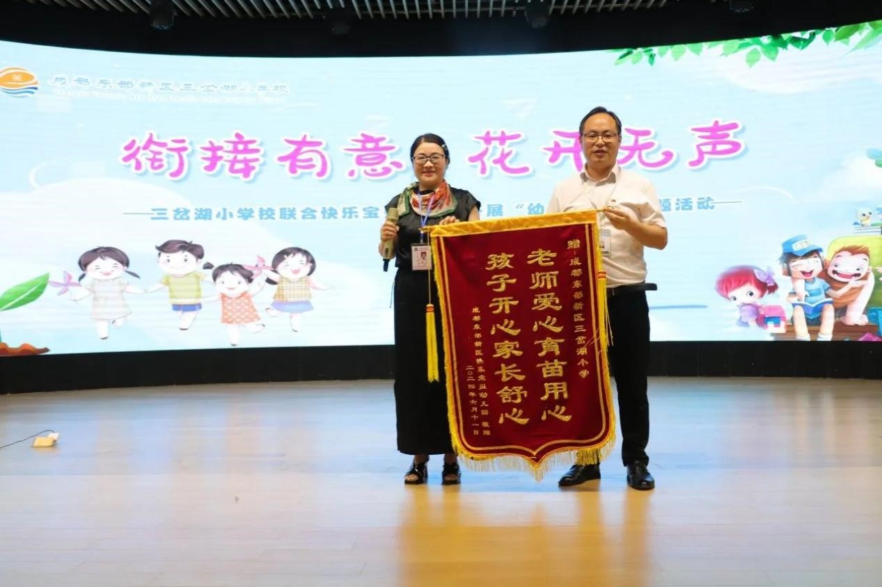 活动伊始,汪校长带来了真挚的致辞,汪校长热情洋溢的讲话,在场的家长听得津津有味,同时家长也更明白了孩子未来学习之路的方向。快乐宝贝幼儿园周园长还为三岔湖小学送上了一份神秘的礼物——锦旗,这既是对我校工作的肯定,更是我校不断追逐更好的动力。
