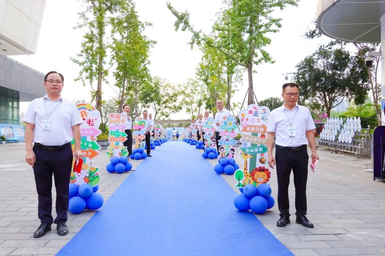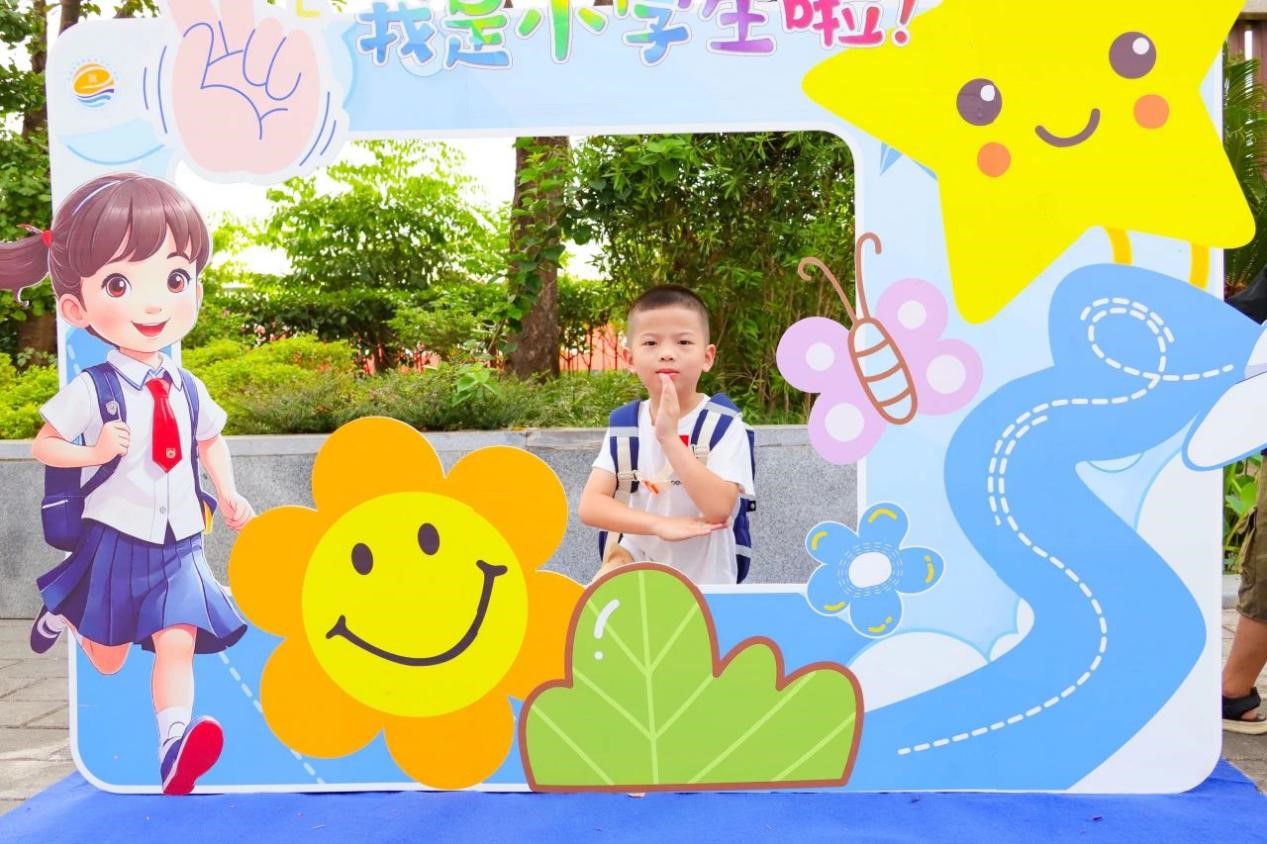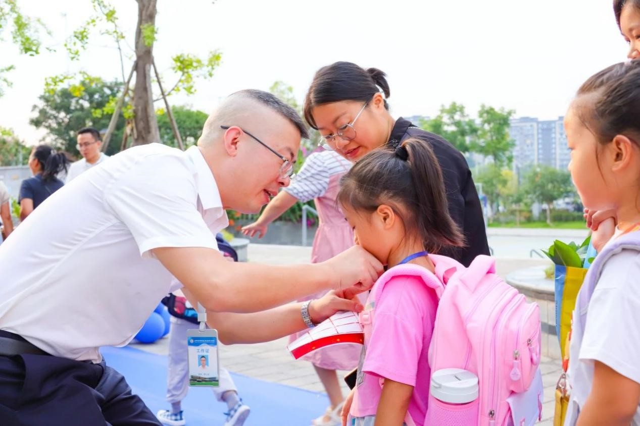 晨光熹微,秋风送爽,湖小全体行政班子列队校门口,欢迎每一位小天使的到来。他们为孩子们送上入学第一礼,贴上专属小学生的标签,祝贺他们成为了一名小学生,迈出了求学道路的第一步。在老师们的衷心祝福下,孩子们稚嫩的脸上洋溢着幸福的笑容,他们那一双双清澈的眼睛里闪烁着光芒,就像晨曦中第一缕阳光点亮大地,也点亮了校园。
