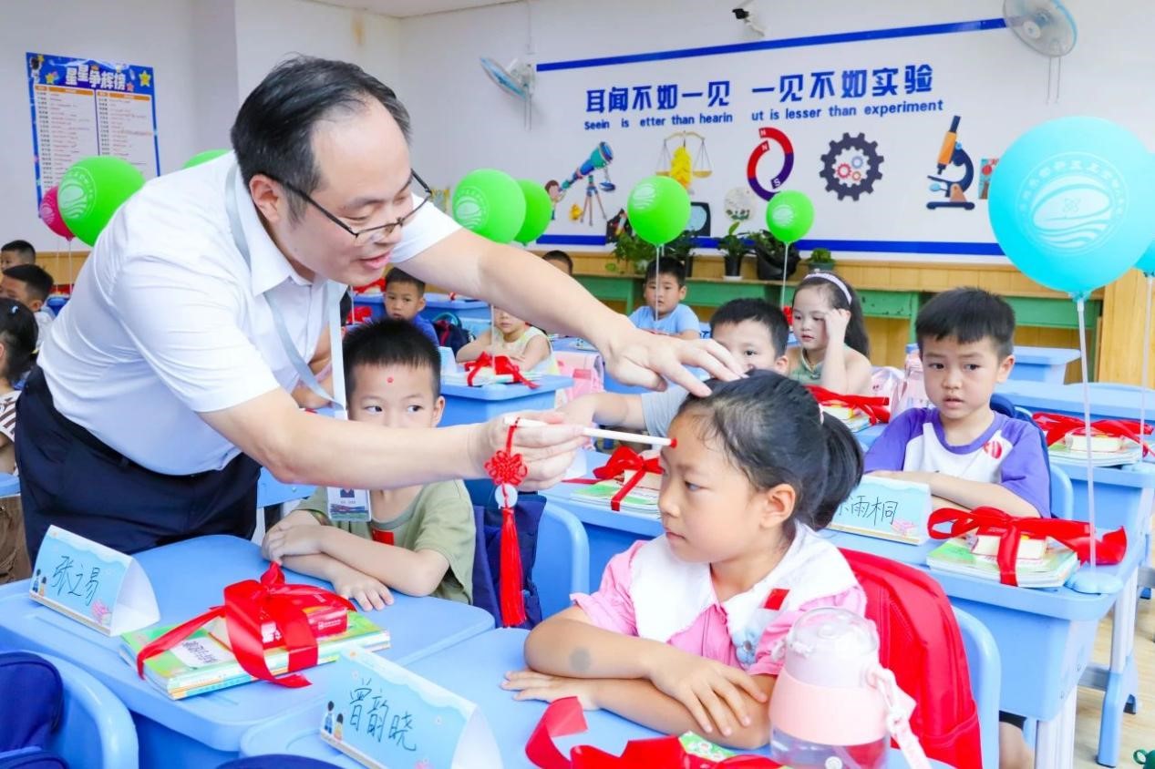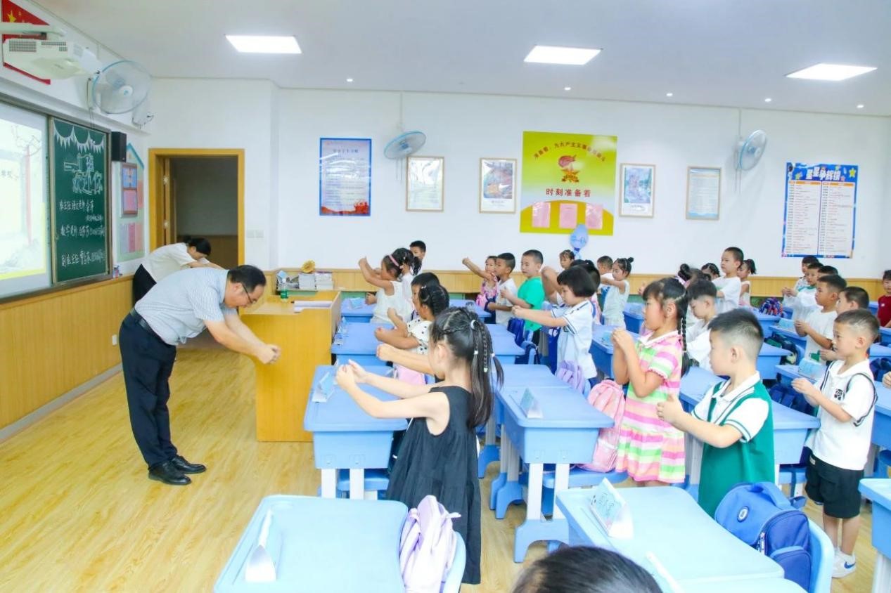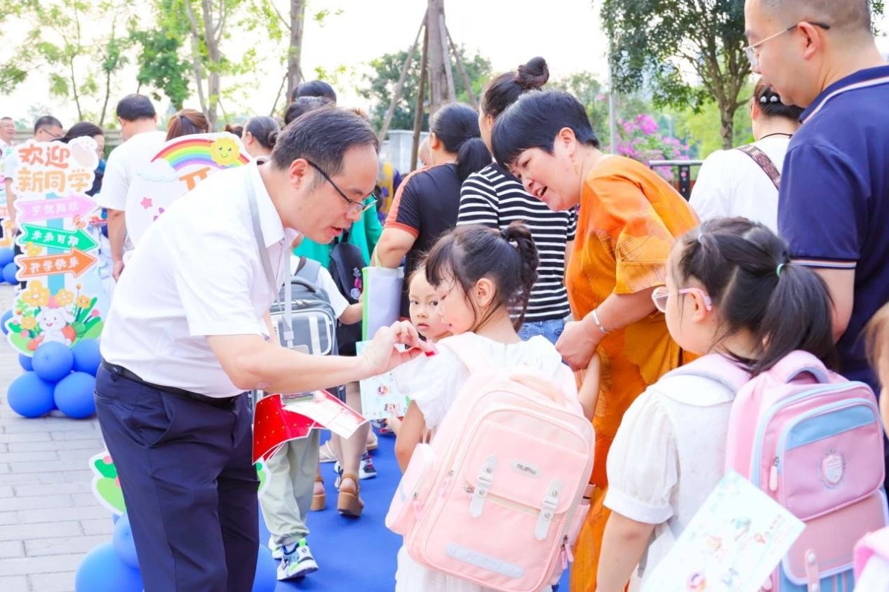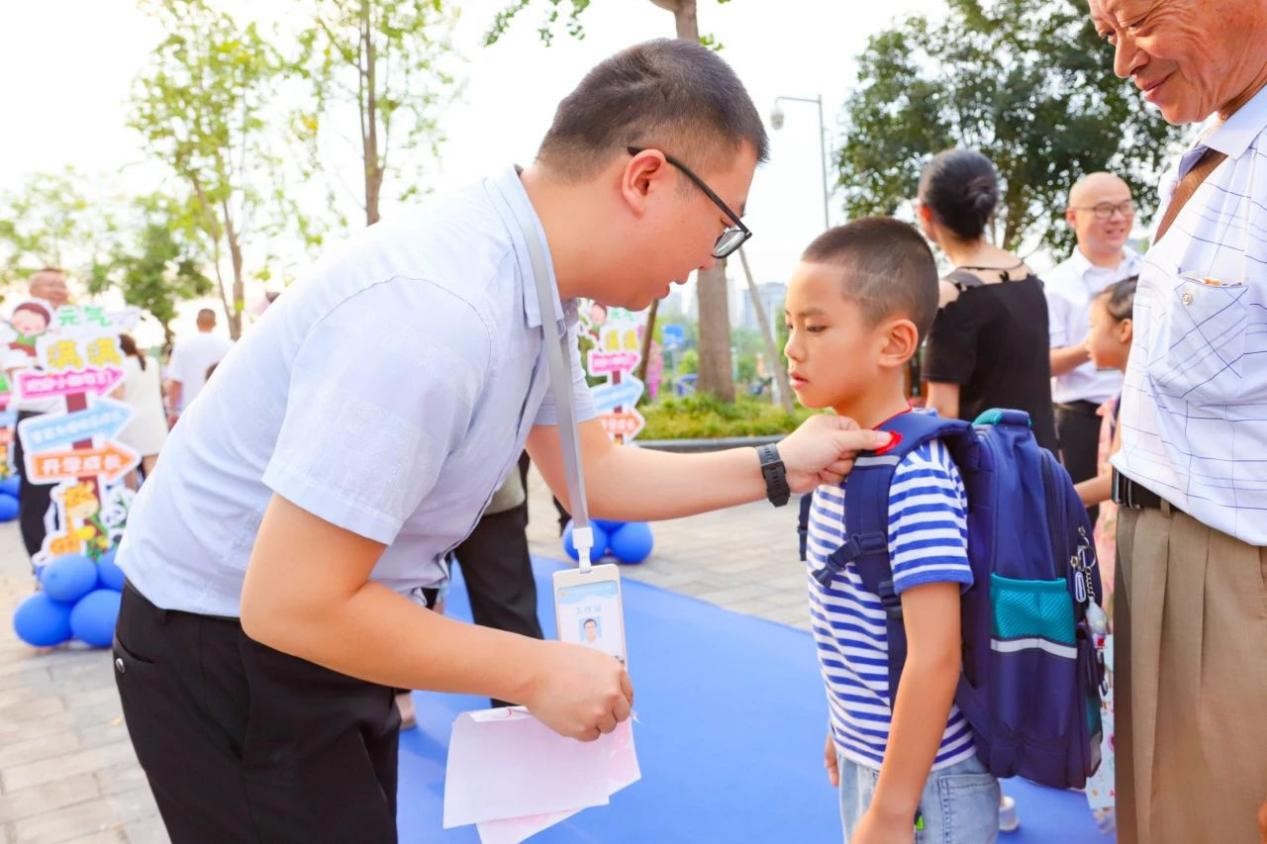 晨光熹微,秋风送爽,湖小全体行政班子列队校门口,欢迎每一位小天使的到来。他们为孩子们送上入学第一礼,贴上专属小学生的标签,祝贺他们成为了一名小学生,迈出了求学道路的第一步。在老师们的衷心祝福下,孩子们稚嫩的脸上洋溢着幸福的笑容,他们那一双双清澈的眼睛里闪烁着光芒,就像晨曦中第一缕阳光点亮大地,也点亮了校园。