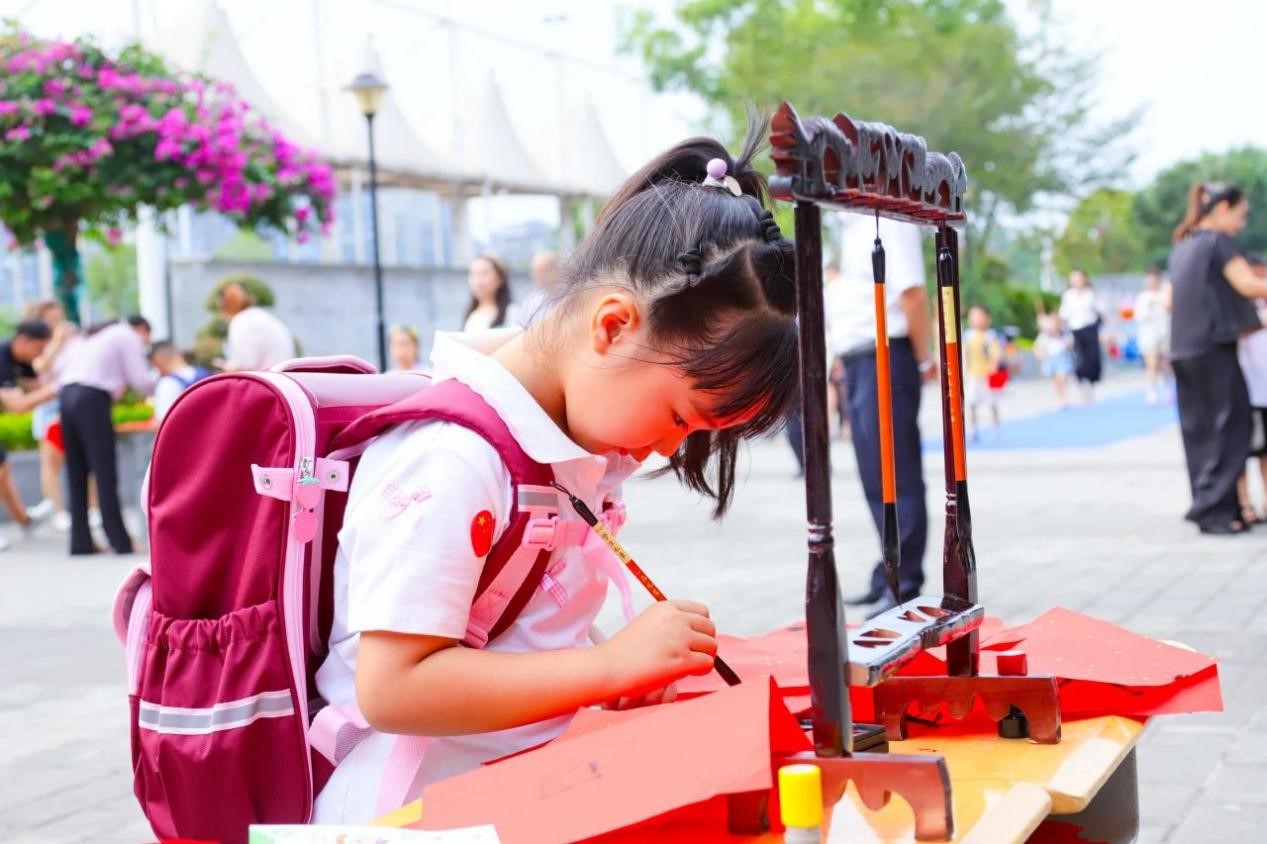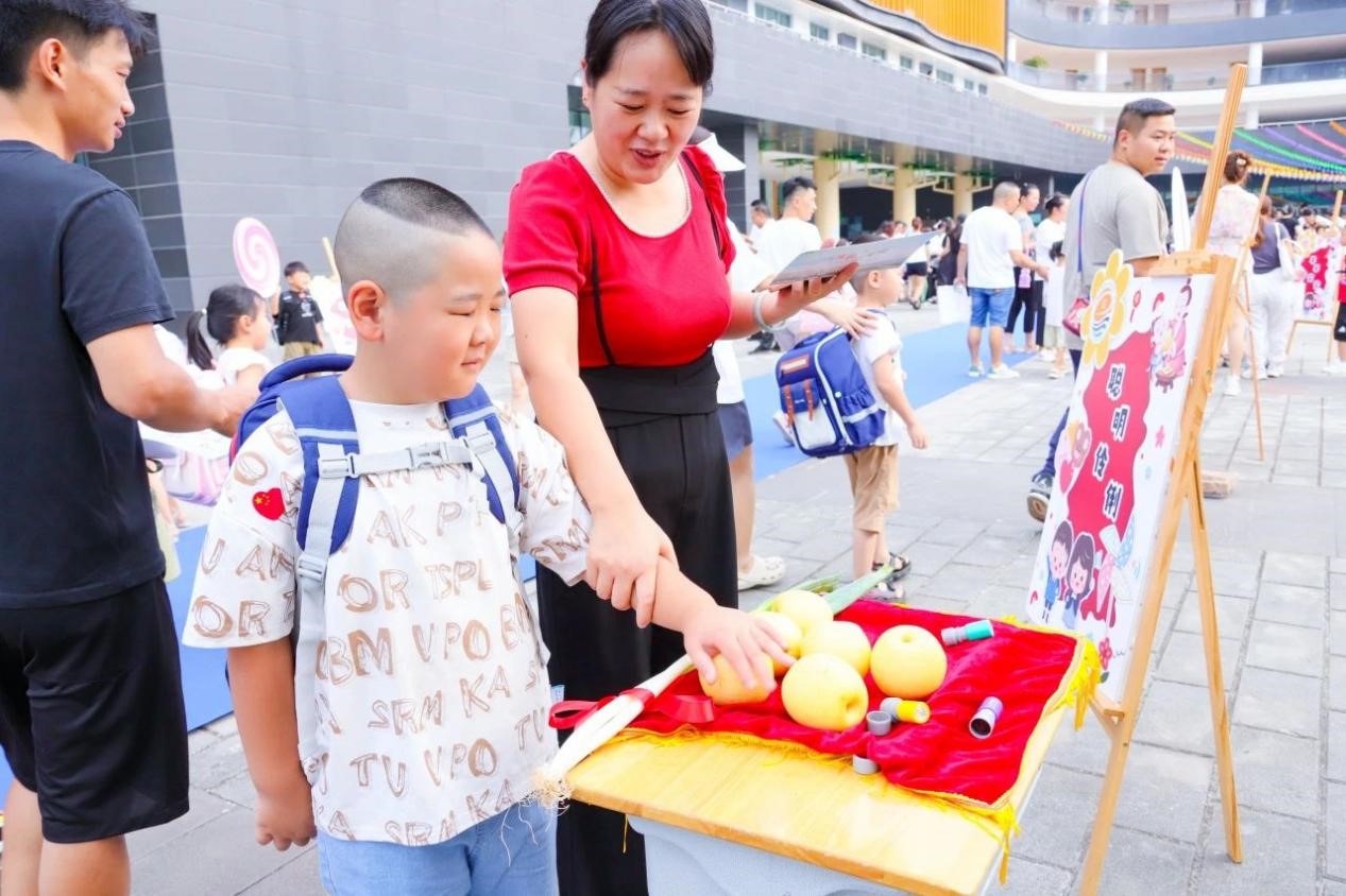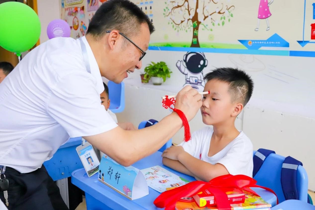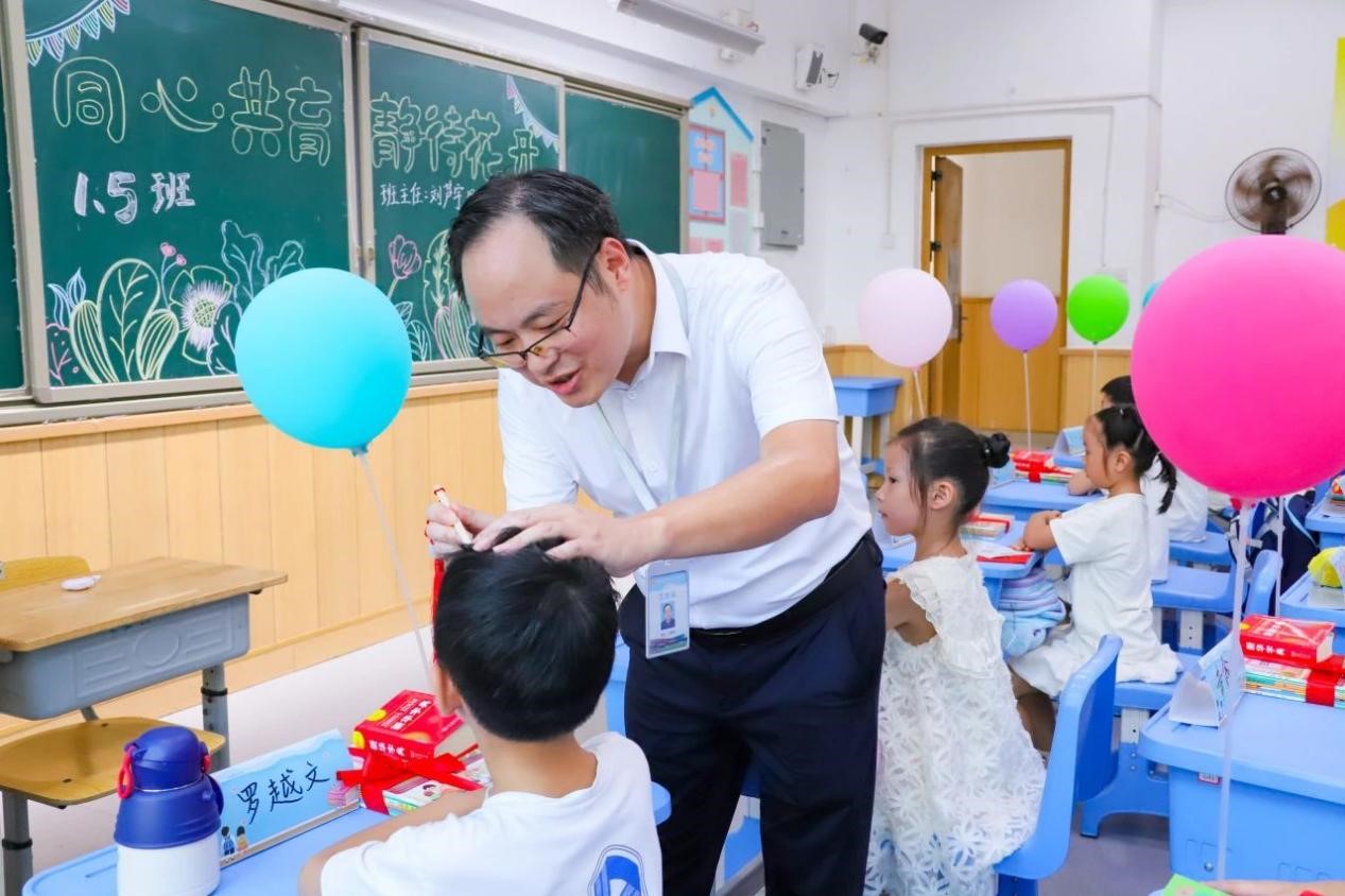 老师们手持朱笔,轻轻一点,为孩子们的额头添上一颗亮丽的红痣。这不仅是智慧的印记,更是梦想启航的灯塔,照亮他们前行的道路,让智慧的火花在他们心中熊熊燃烧。