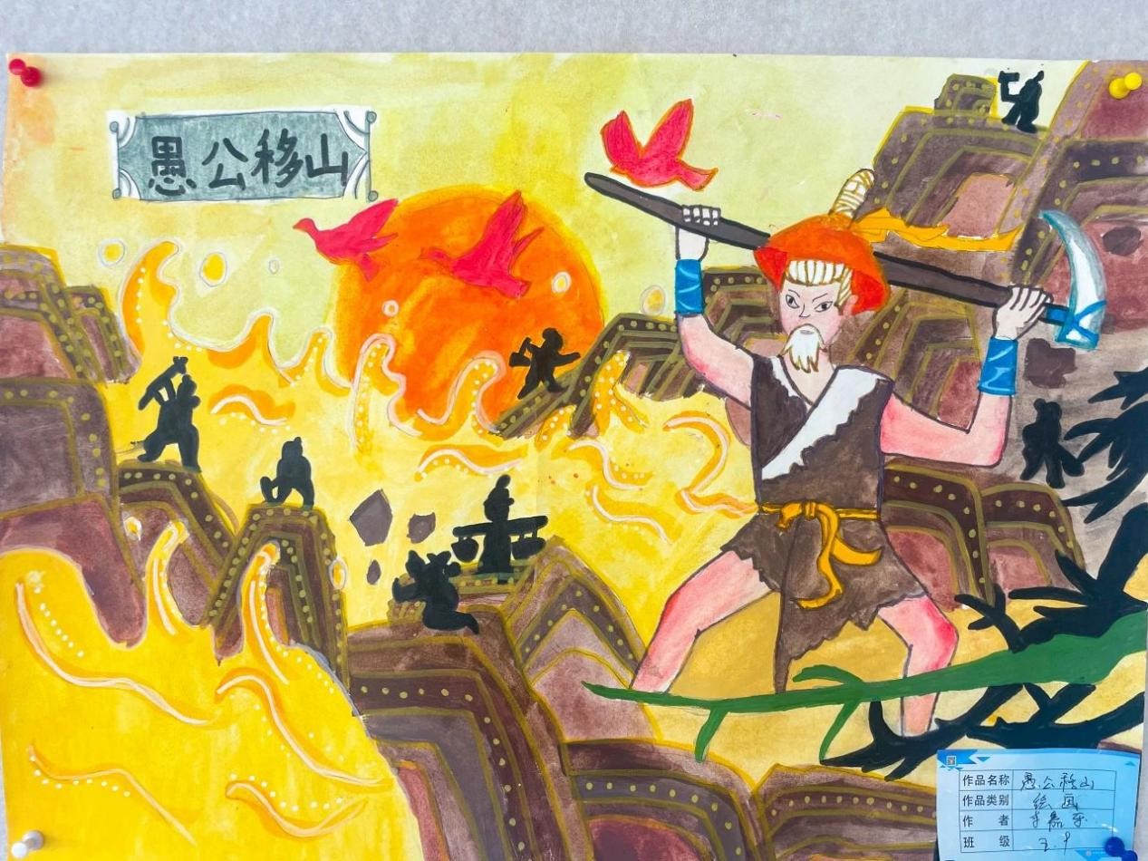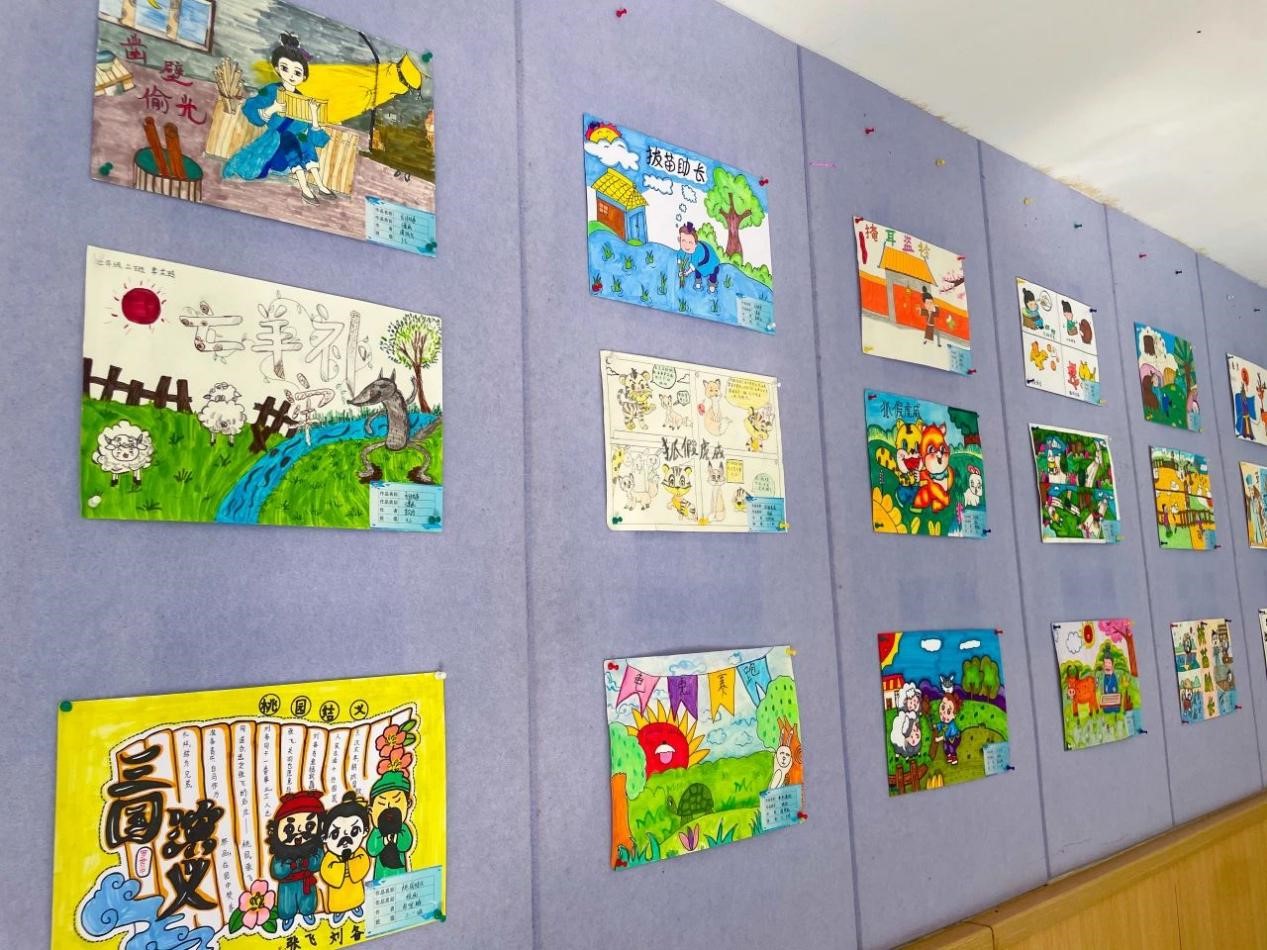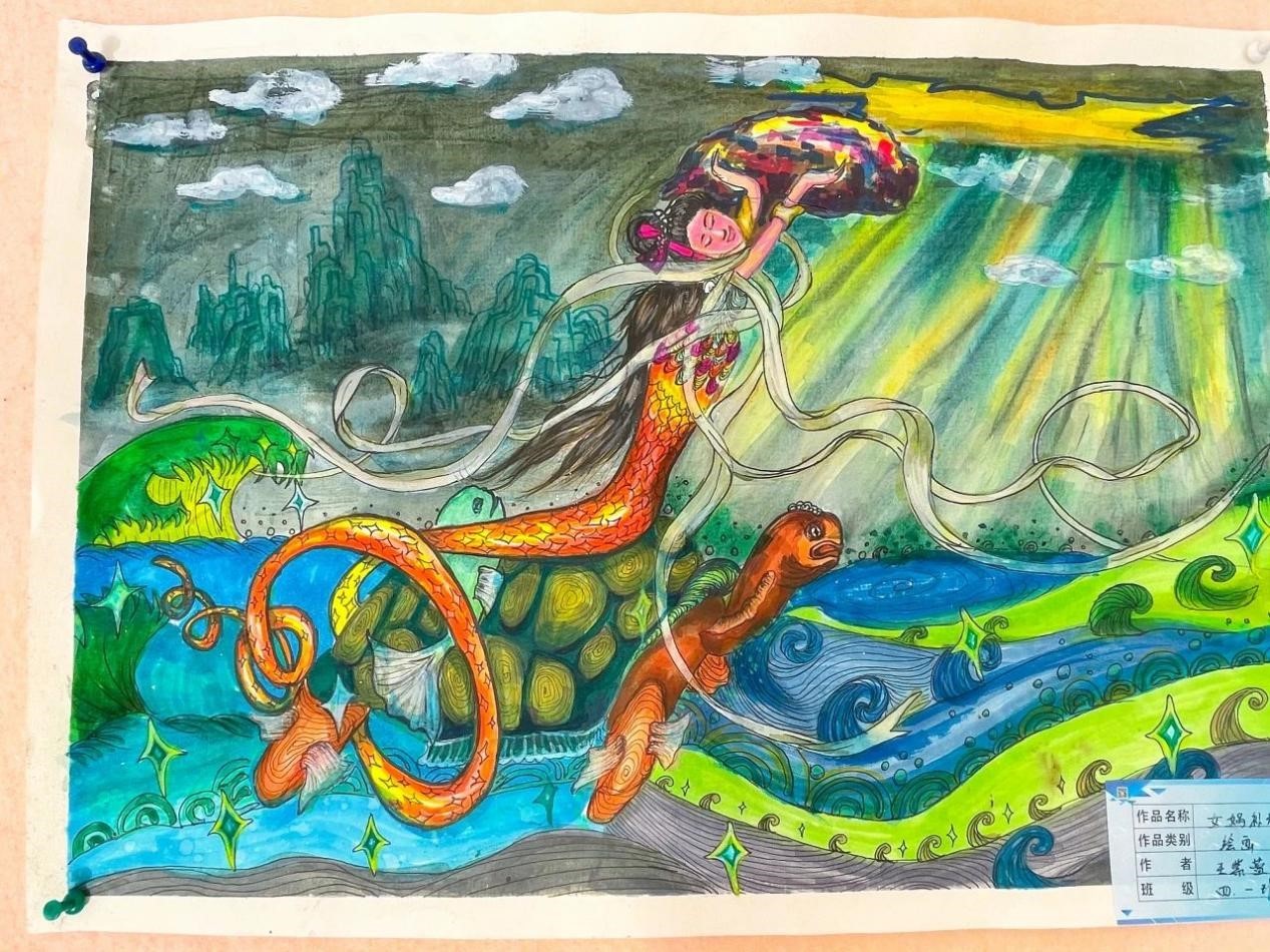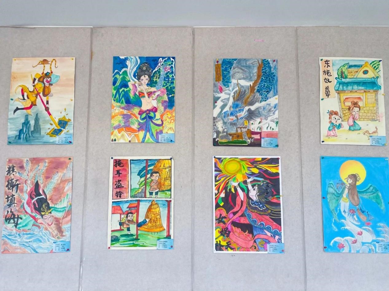 孩子们根据自己的理解和想象,用自己的巧思和巧手将我国历史故事和神话故事与绘画结合起来,在一词一句,一笔一划之间,创作出一幅幅惟妙惟肖的绘画,传递着对传统文化的喜爱。