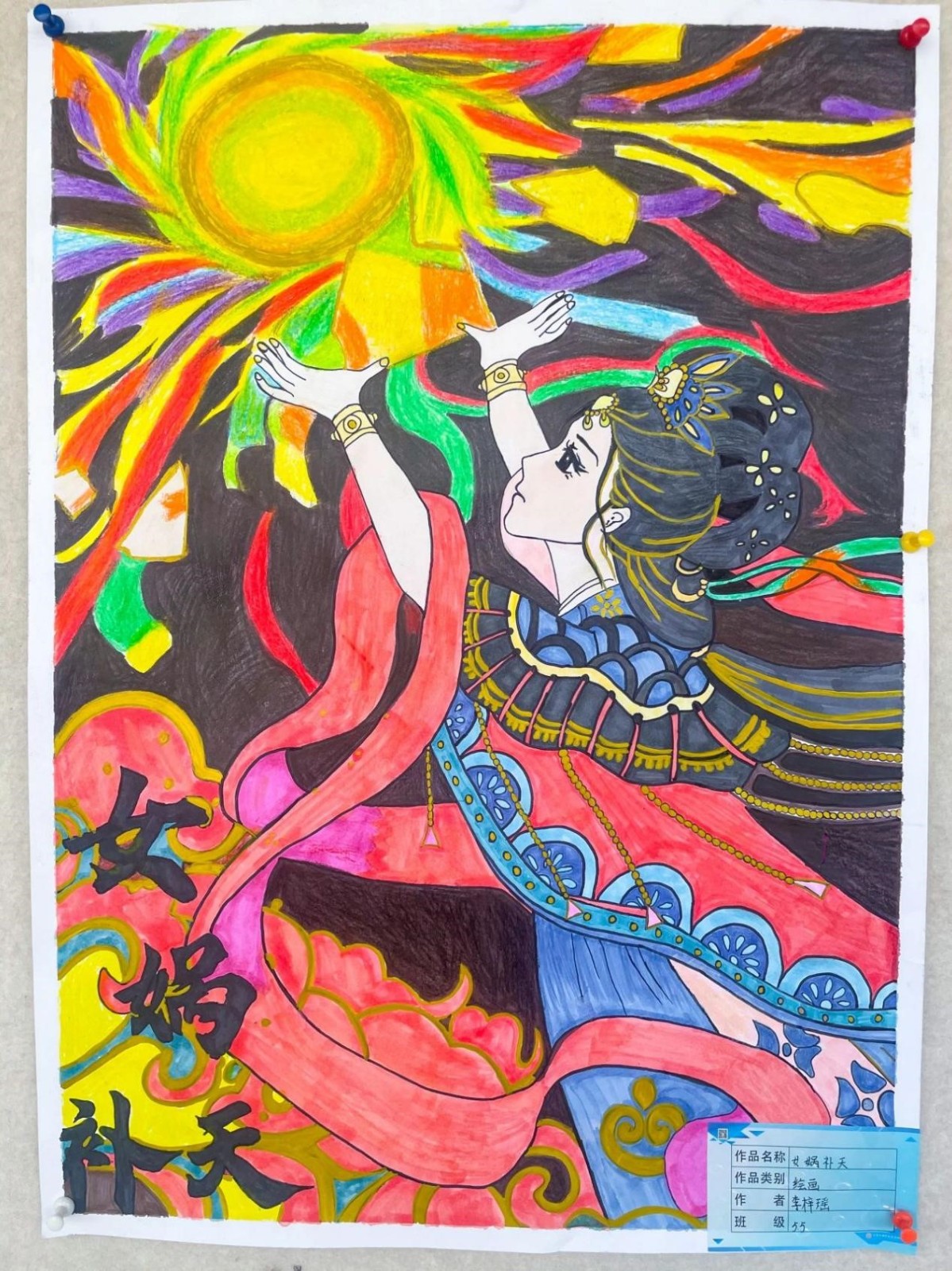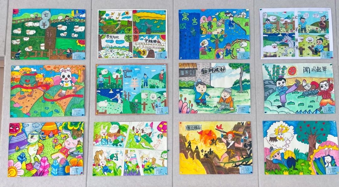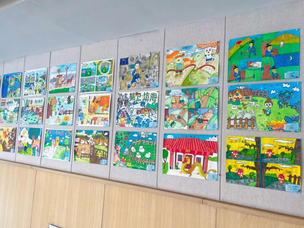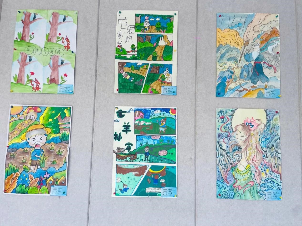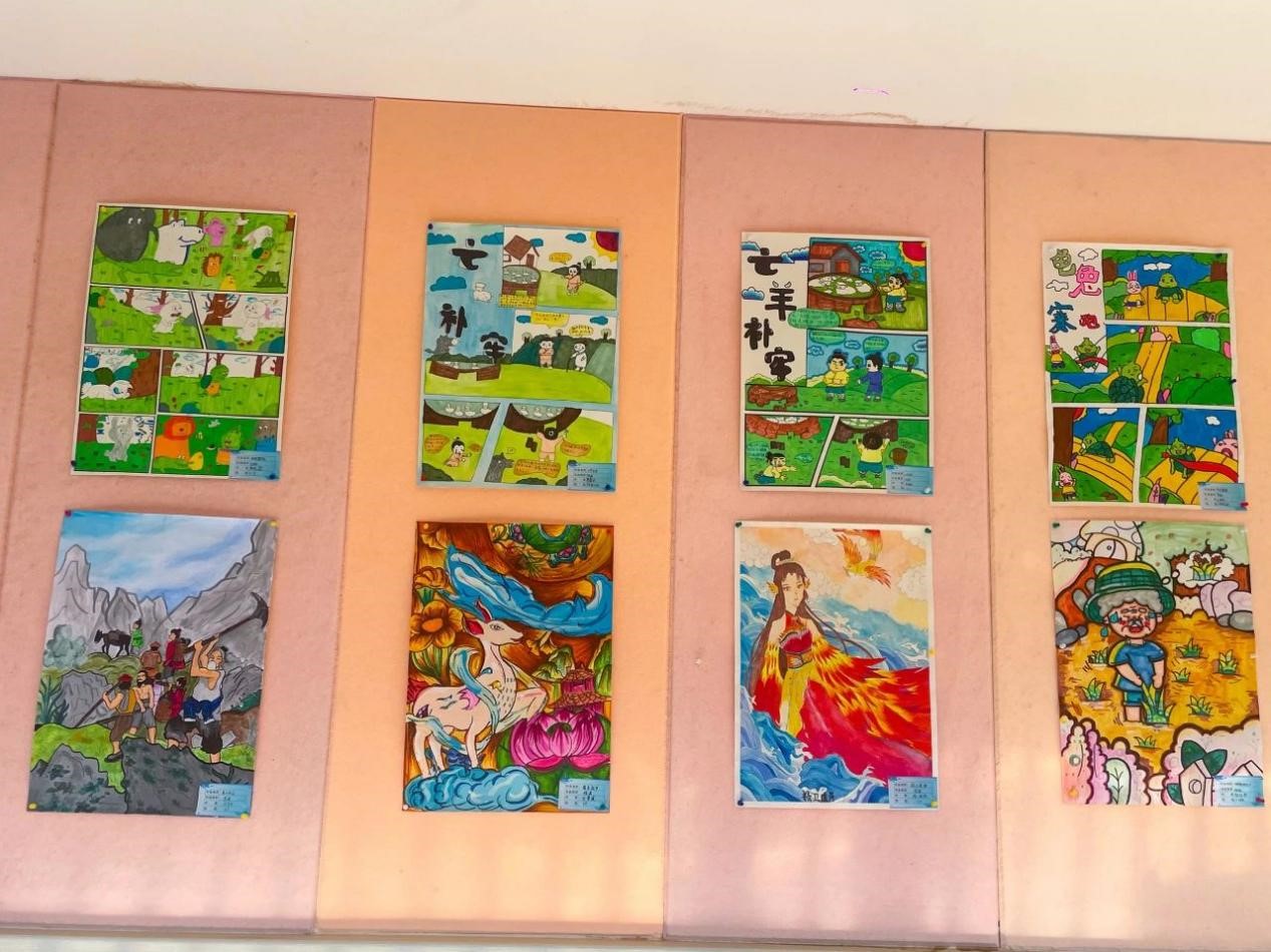 孩子们根据自己的理解和想象,用自己的巧思和巧手将我国历史故事和神话故事与绘画结合起来,在一词一句,一笔一划之间,创作出一幅幅惟妙惟肖的绘画,传递着对传统文化的喜爱。