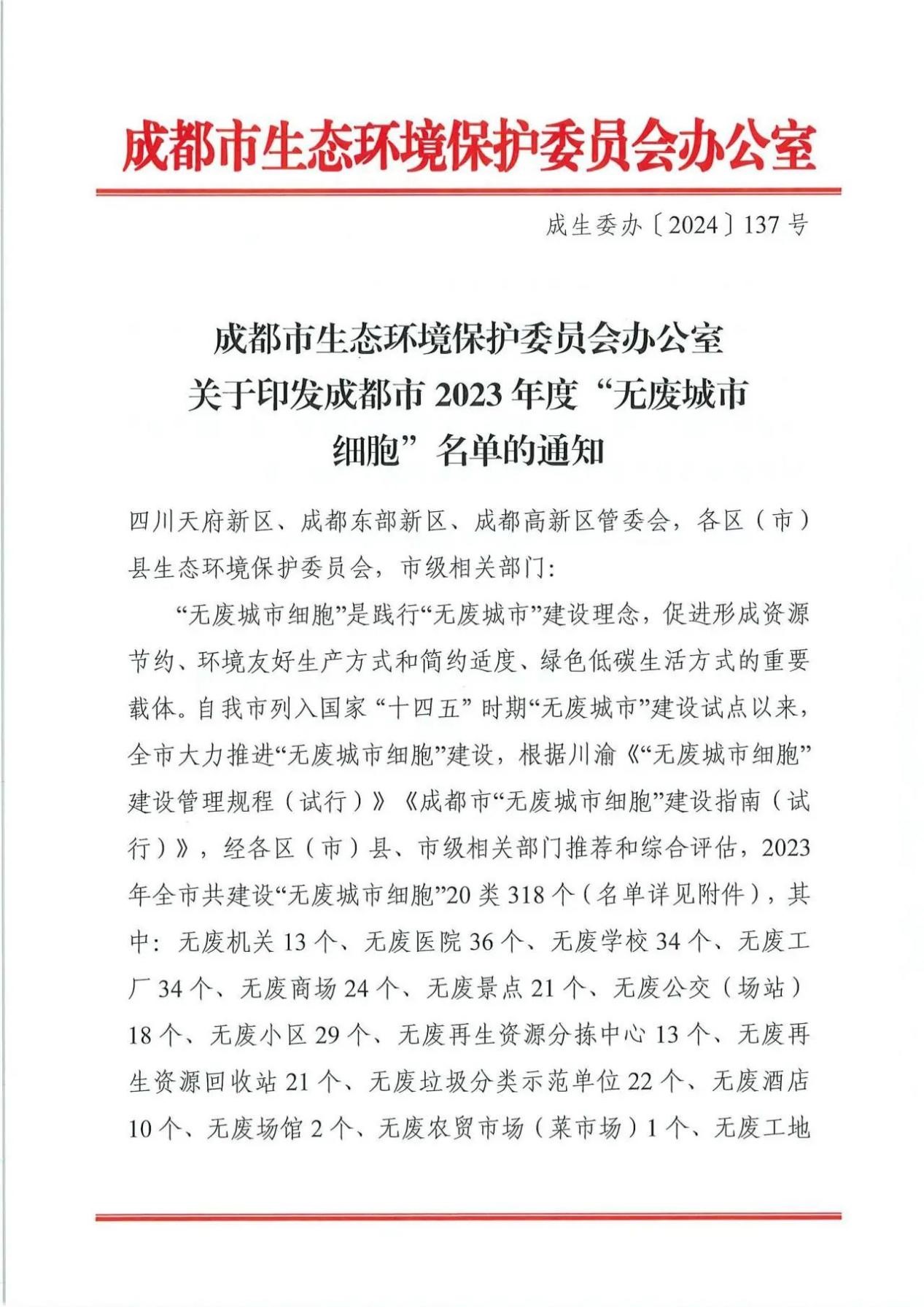 【喜报】热烈祝贺三岔湖小学校荣获成都市2023年度“无废城市细胞”之“无废学校”称号