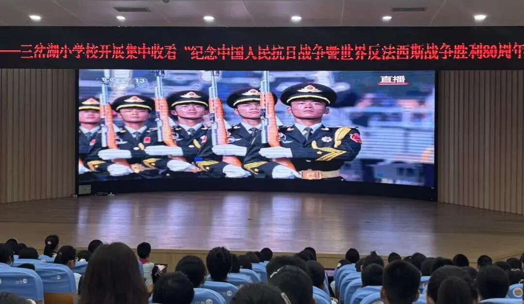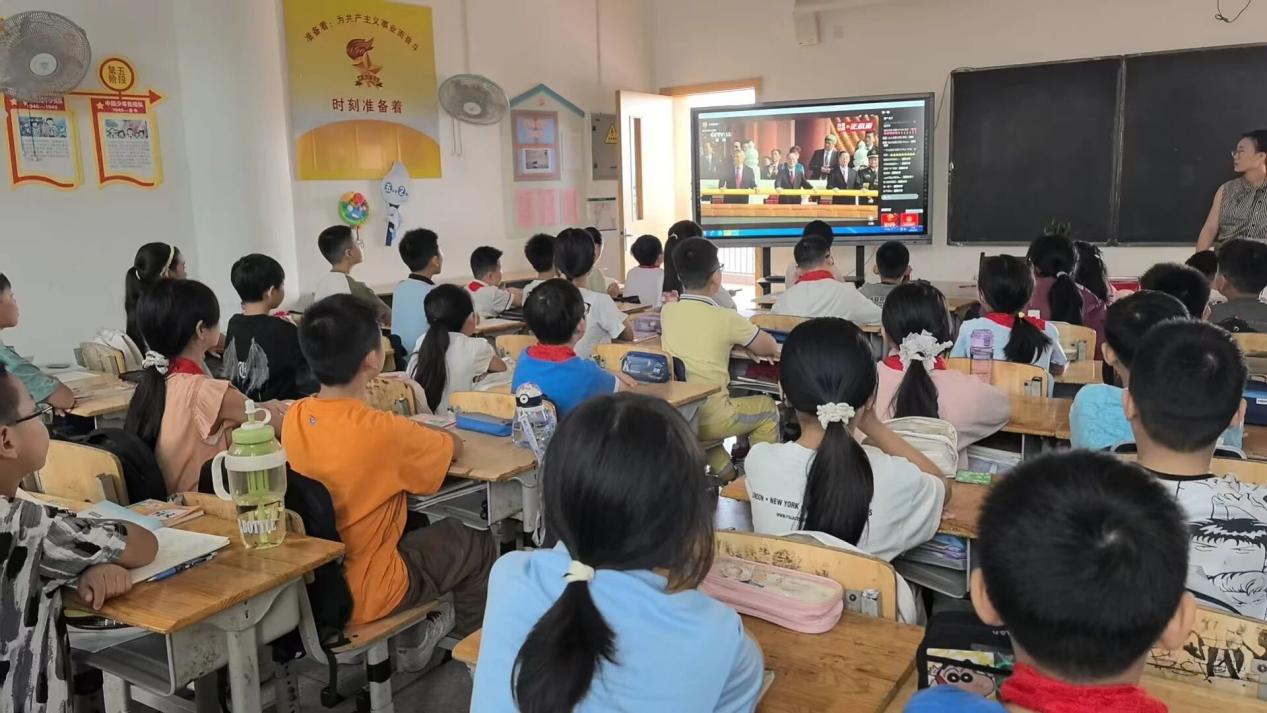 ——三岔湖小学校组织全校师生集中收看“纪念中国人民抗日战争暨世界反法西斯战争胜利80周年大会”直播