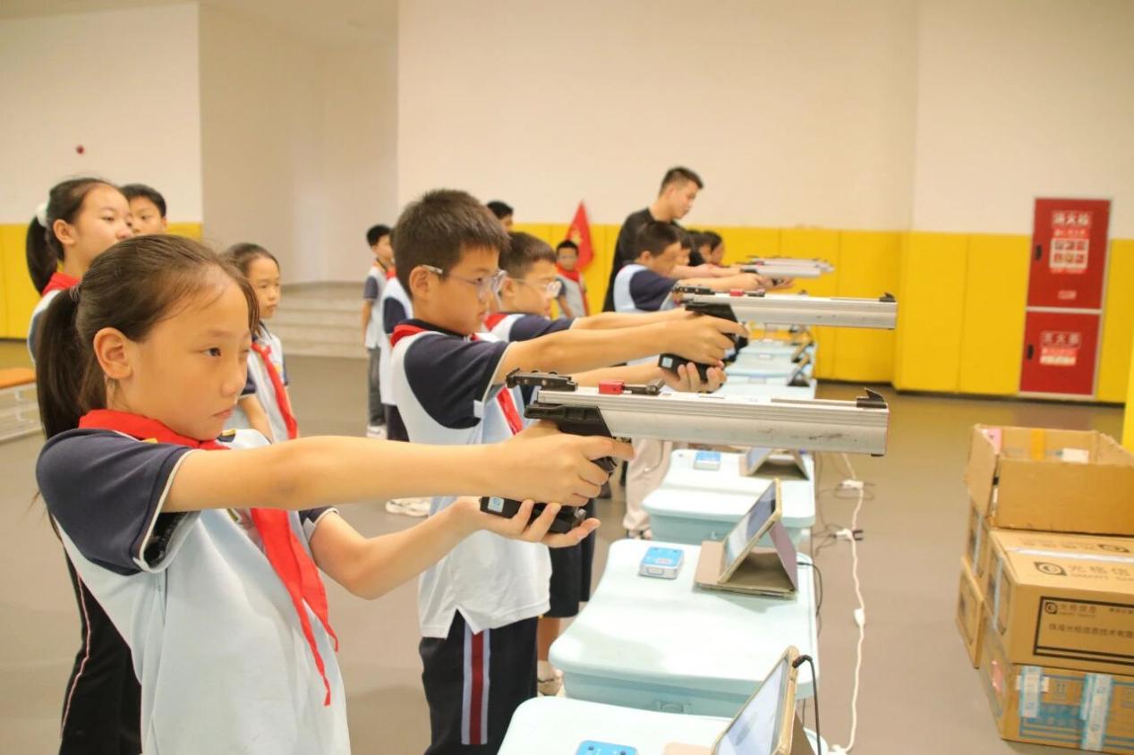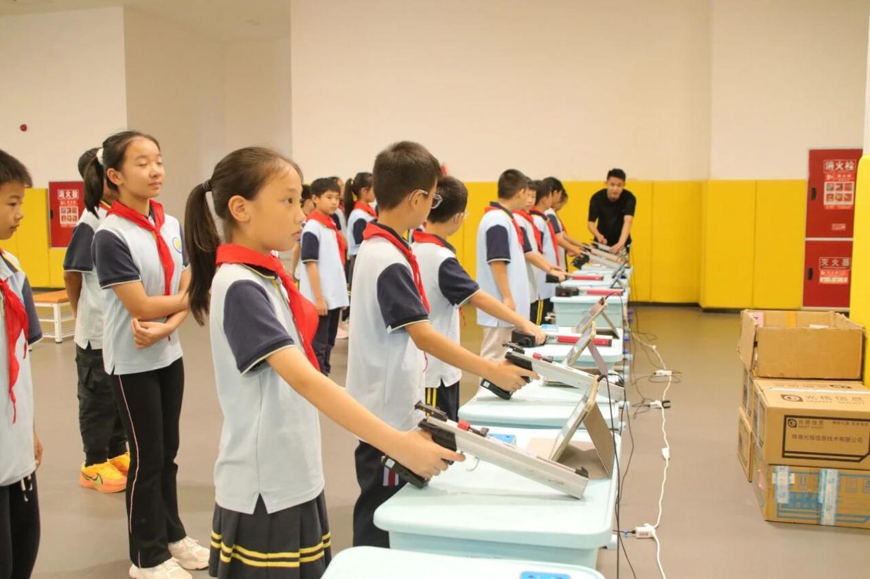2025年9月25日,在成都东部新区青少年启志中心和三岔湖小学校的组织下,湖小学子来到成都石室东部新区实验学校光电射击基地,开展光电射击体验活动。他们正以枪为笔,以靶为纸,完成一场关于勇气、智慧与成长的特殊答卷。
