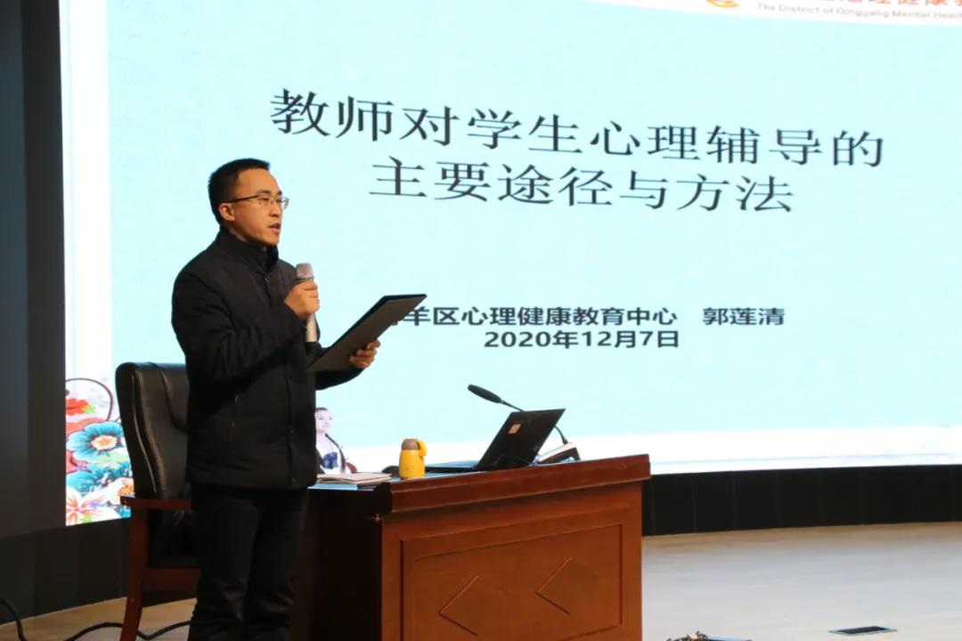 为了减轻学校老师们应对生活和工作中的压力,拥有积极健康的生活态度,12月7日下午,三岔湖小学全体教师在蓝色环湖大厅聆听了由成都市著名教育心理学专家、成都市青羊区心理健康教育中心专职专家顾问郭莲清老师主讲的《对学生心理辅导的途径和方法》讲座。培训会由教科室副主任袁希睿主持。