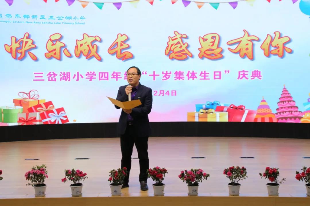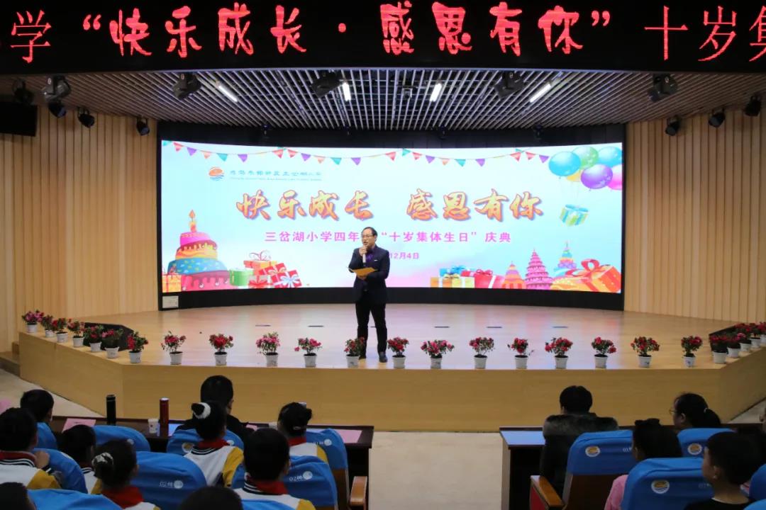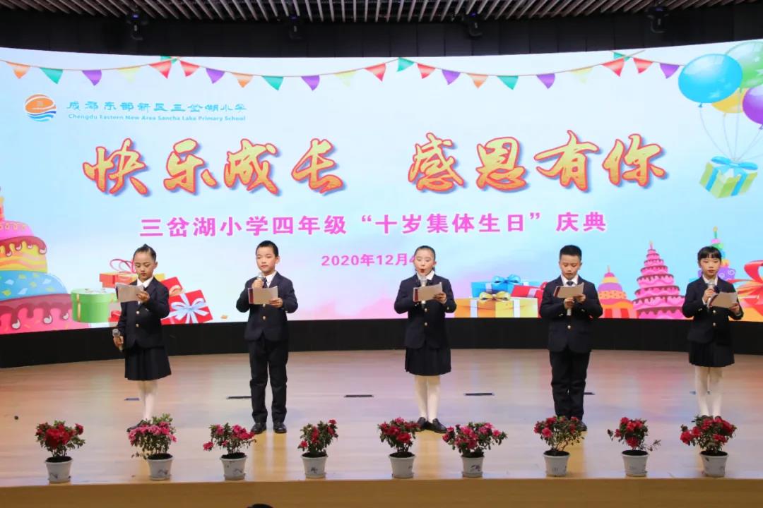 为了让孩子了解这个“不一样的生日”的含义,体味父母、老师为自己所付出的辛劳,感恩父母、师长的爱,12月4日下午,东部新区三岔湖小学隆重举行了以“快乐成长 感恩有你”为主题的四年级十岁集体生日庆典。