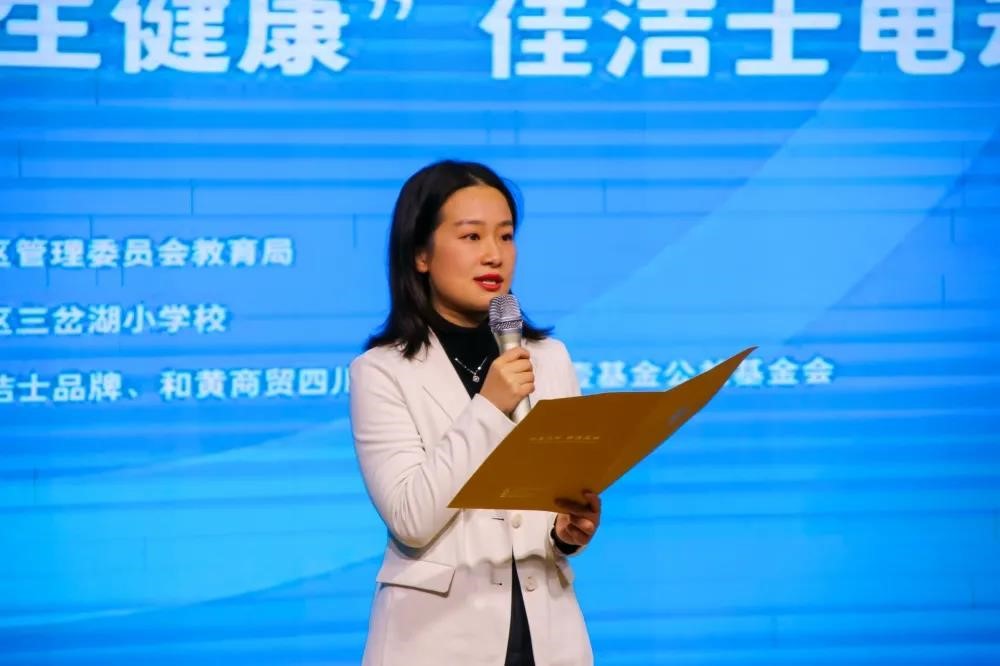 授牌仪式后,宝洁大中华区高级区域经理梁延、和黄商贸四川分公司项目经理冯丽分别发表讲话,希望捐赠能为东部新区师生提供物资帮助和精神鼓励,使他们以健康的体魄完成学业和工作,以自信的笑容面对未来的挑战。