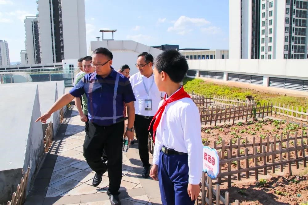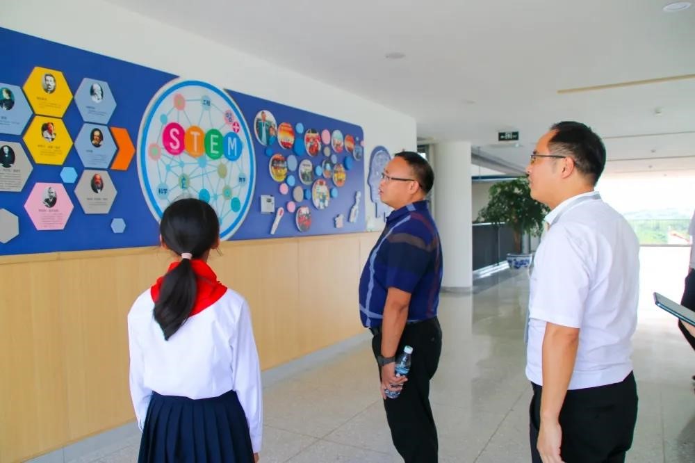 卿所长一行在副校长汪辉勇、郭勇的陪同下,跟着学校小导游的讲解实地查看了学校的校园文化建设、教学常规、德育常规情况,卿所长重点对学校图书室、各教室、功能室、艺术教室和空中农场进行了查看并进行指导。卿所长细致了解了学生各活动场所的环境创设和设备器材的投入和使用的情况,并对学校文化建设、课程建设、教师队伍建设以及校园安全等方面的工作进行了详细询问和了解。