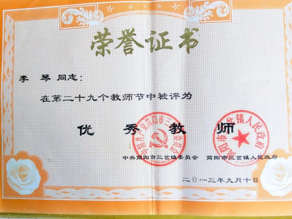 忠诚党的教育事业,时刻牢记并思考“假如我是孩子”,“假如是我的孩子”这两句话,用心教育,对自己高标准,严要求。认真备课,精心设计教学过程,课堂灵动,活泼,高效,有趣,让学生在轻松愉悦的课堂氛围中,习得方法与知识,懂得做人的道理。历年来,她所带班级,多次获得“优秀班集体”称号;所任教的学科,在期末素质检测中,多次取得全片区第一的成绩。由于教育教学成绩突出,在学校的年度考核中,多次被评为“优秀”;也多次被简阳市市委政府,三岔镇党委政府,三岔学区教育督导办公室评为“优秀教师”,“优秀共产党员”。