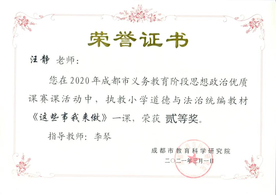 1998年8月参加工作,中小学高级教师,四川省成都市小学语文骨干教师,简阳市优秀教师,2021年9月被评为成都东部新区优秀共产党员。