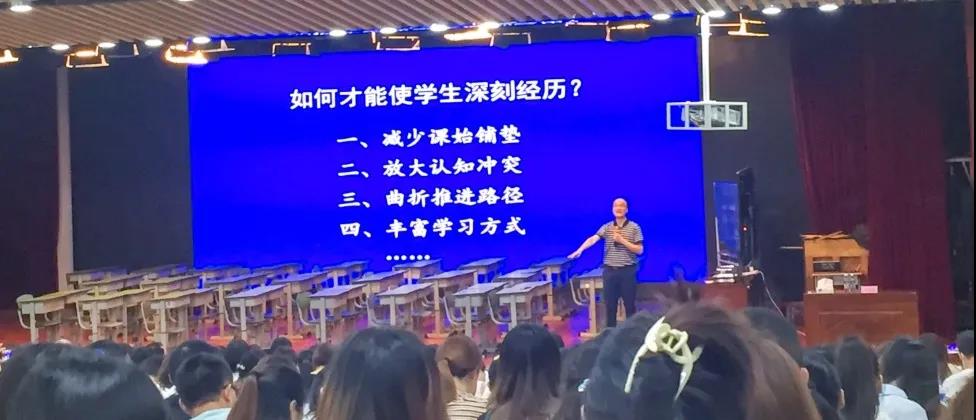 接着,黄老师进行了《落实“双减”工作部署要求,深化育人关键环节改革》的专题讲座。黄老师从“怎么理解减负”入手,指出在“双减”背景下对学生的学业水平考试应该从考查知识走向考查能力和素养,考试的指挥棒应指向“关键能力”——分析问题和解决问题的能力。因此,教师更应关注知识体系和教学方法的改革,给予学生正确的思考方法。