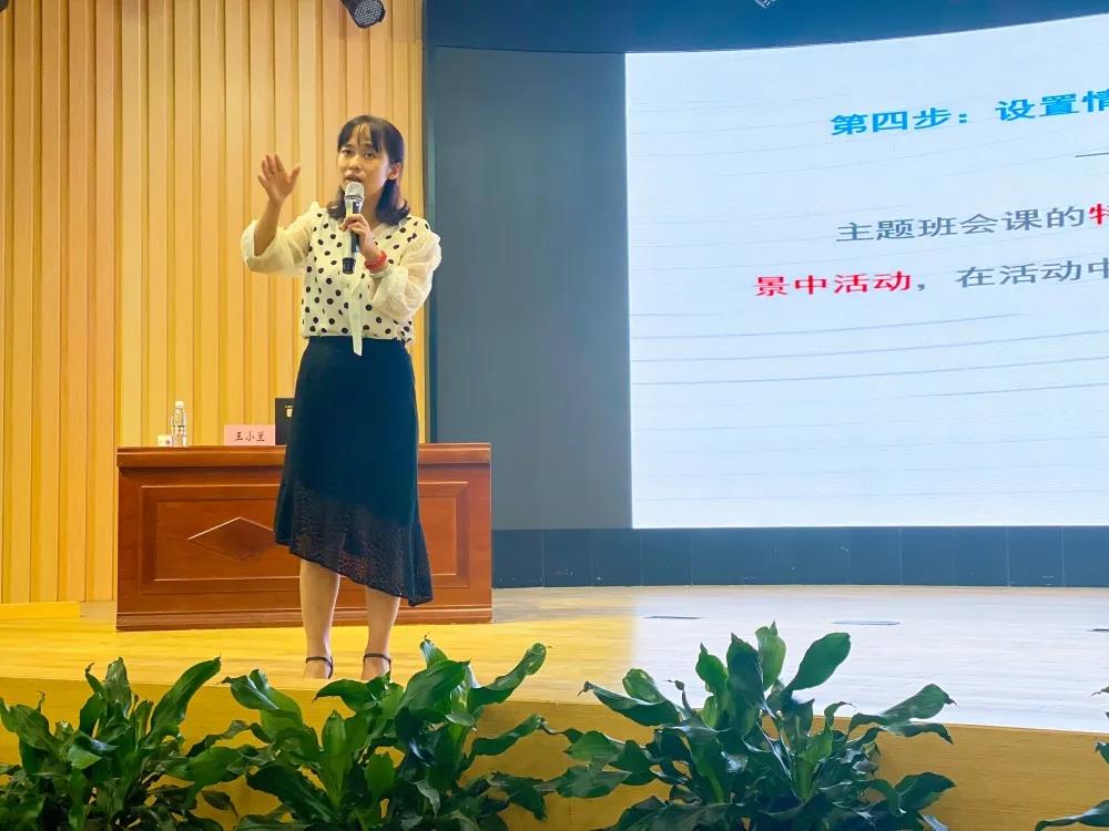 紧接着,王小兰老师就《主题班会课设计指导》做专题讲座。育人为本,德育为先。班主任的意义是为学生立德,为社会树正气,为国家育栋梁。班主任要学会做一个有心人,善于发现学生中存在的问题,防患于未然,善于利用一切教育契机,对学生进行思想品德教育,帮助学生树立正确的价值观、人生观。王小兰老师从活动目标、活动形式、活动准备、活动过程几个方面对主题班会课的设计进行了阐述,并提到主题班会是立德的主阵地,班主任提升的主途径,促进学生的自我发展,促进教师的专业成长。王小兰老师强调主题班会课不是专门用来比赛、展示和表演的,平时的班会课都应该是主题班会课。