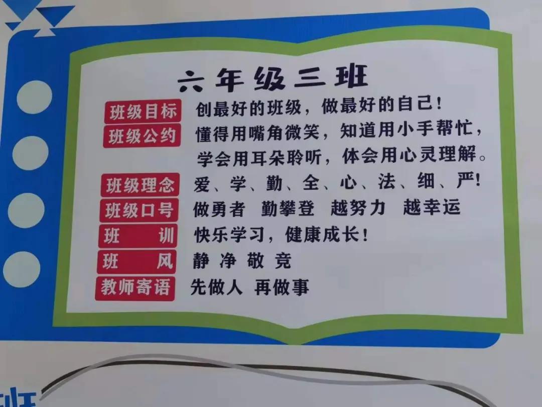 我们在老师的引领下吮吸知识的雨露,在知识的海洋中尽情遨游,在阳光下茁壮成长。54张意气风发的笑脸,54颗热血澎湃的心,汇集在这里为了梦想而奋斗。恰同学少年,风华正茂;逞飒爽英姿,一代天骄。相信在我们的共同努力下,六(3)班会为学校增添一份闪耀的光彩,因为我们一直坚信:气有浩然,学无止境。