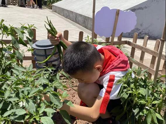 经过前期同学们的细心呵护:浇水、施肥、除草、捉虫。今天迎来大丰收啦!采摘活动分为四个环节 : 一是老师讲解采摘的注意事项和安全问题,并示范采摘技巧;二是各班分区域进行采摘活动;三是蔬菜义卖;四是分享劳动收获并烹饪佳肴。同学们个个兴高采烈,争先恐后地劳动起来。摘的摘,接的接,大家分工明确,团结合作,其乐融融,笑声溢满了整个校园。