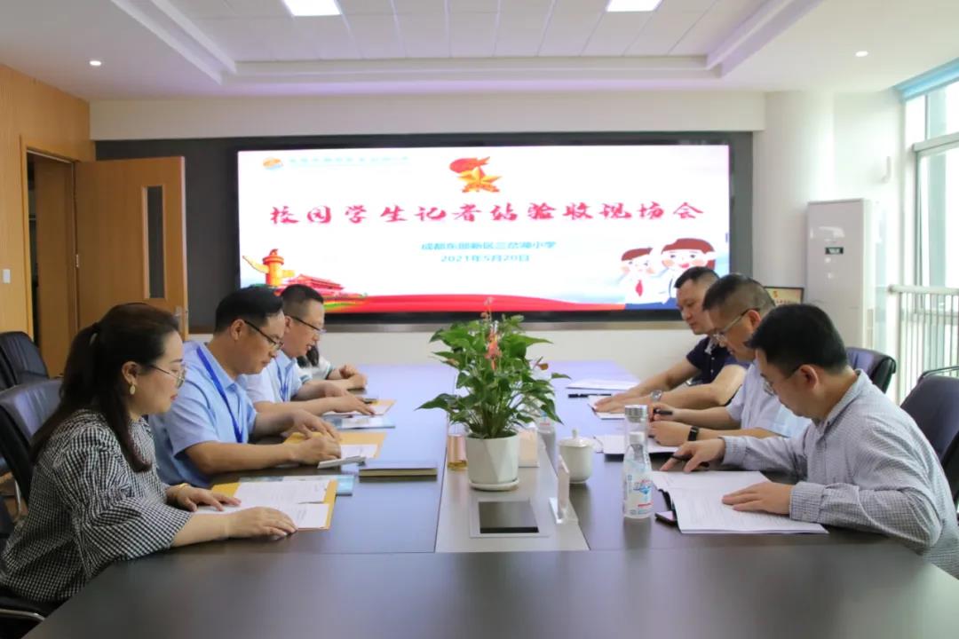 为丰富校园文化生活,发展学生个性特长,满足学生新闻创作的愿望,培养他们的创新能力、实践能力、社交能力,全面提高我校少年儿童的综合素质,我校申请筹建了“成都东部新区三岔湖小学校园学生记者站”。5月20日上午,中少新闻总社全国队报队刊四川工作站站长郭庭斌、四川新创教育研究院副院长赵逸云、中少新闻总社全国队报队刊工作站学生记者活动部主任冯丹莅临我校对“校园学生记者站”申报工作进行检查、验收。副校长汪辉勇、副校长郭勇、德育处副主任汪霞、德育处干事付晓婷等参加了此次验收现场会。