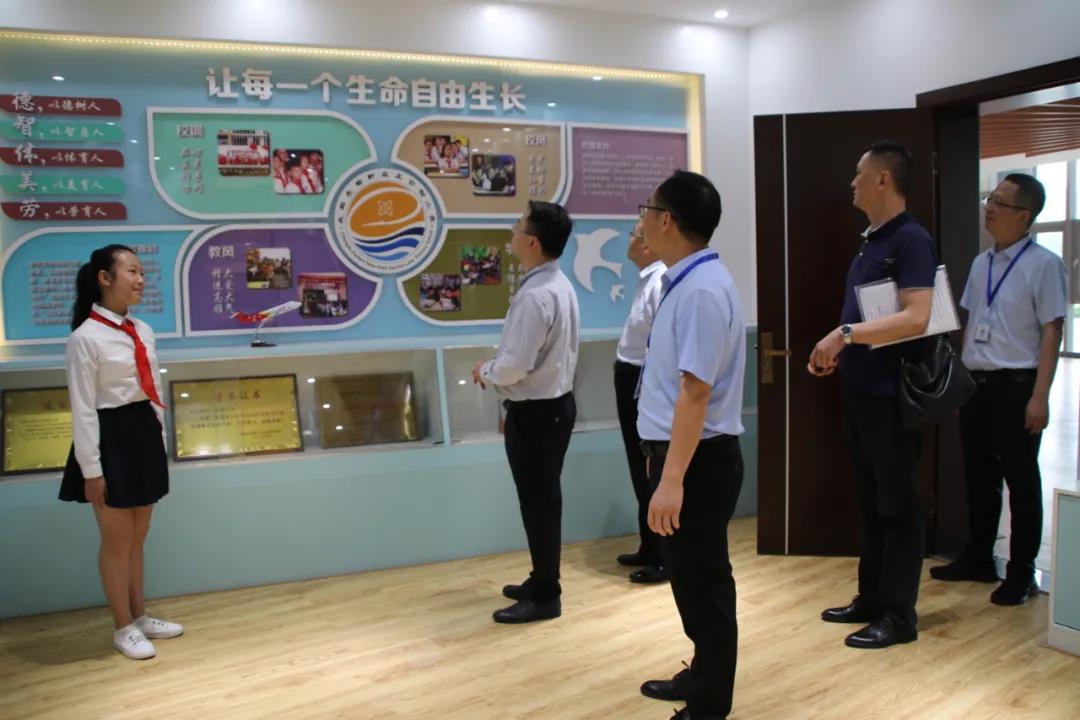 首先,验收专家组在我校校园小导游的带领下参观了校园。专家组首先来到宽敞、明亮的室内篮球场,了解了室内篮球场的使用情况,并叮嘱学校一定要加强学生的体质锻炼。接着,专家组移步到操场,观看了正在操场上开展体育锻炼的学生表演,专家组赞叹不已。当专家组来到学校的荣誉室时,被大大小小的奖牌、奖杯深深吸引,并称赞“办学成绩辉煌,教师素质优良,学生发展全面!”当专家组来到学校环湖蓝色大厅时,赵院长说:“今后,我们要多带一些有名气、有档次的活动到三岔湖小学来开展。”接着,专家组来到学校图书馆,详细了解了学校的藏书情况、学生的阅读情况,对学校高度重视学生课外阅读表示称赞。专家组还一一参观了学校的教室文化、楼层文化、功能室布置,参观了同学们开展的合唱、器乐、舞蹈等活动。最后,专家组在小导游的带领下,来到楼顶的“思源农场”,看到在孩子们的精心培育下,长得郁郁葱葱的农作物,赞赏有佳,对学校把校园劳动教育与家庭劳动教育有机结合的想法给予了充分肯定。专家组一路参观,一路对我校的小导游啧啧称赞,说:“这几个孩子太优秀了,表现能力、综合素养已经达到,甚至超过了城市孩子,学校培养得好呀!”
