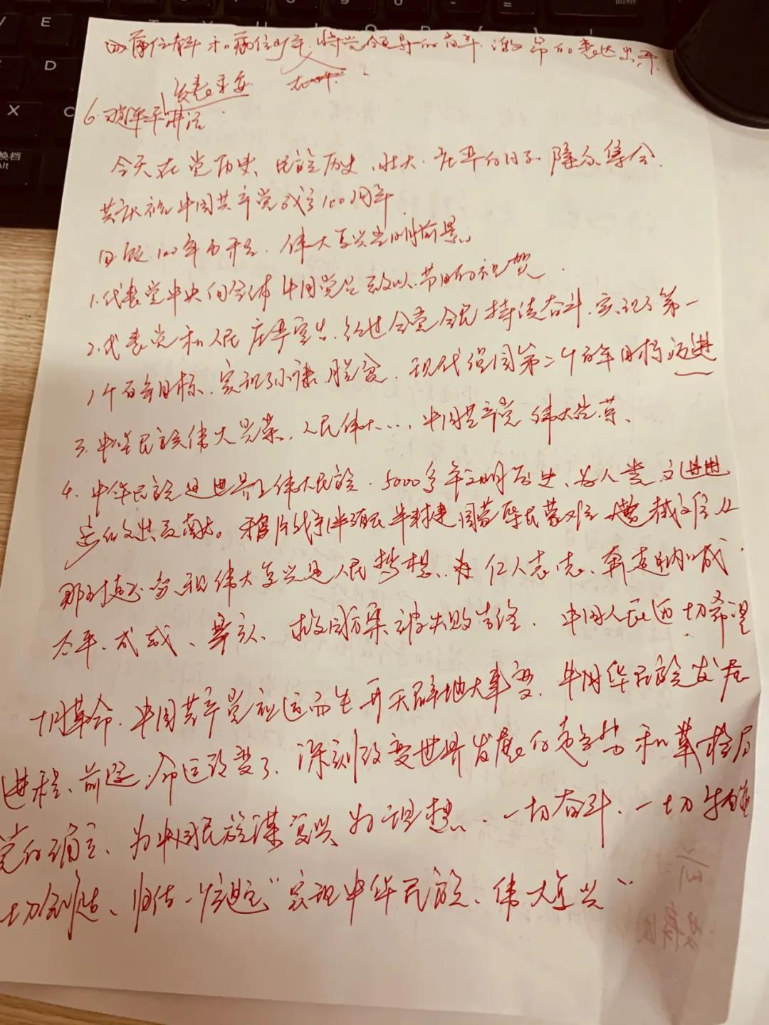 紧接着,中共中央总书记、国家主席、中央军委主席习近平发表了长达一个多小时的重要讲话。我校师生认真地聆听着习主席的讲话,并做好相应的记录。在习主席的讲话中,我们明历史,知荣辱。“雄关漫道真如铁,而今迈步从头越。”在建党百年之际,我们无比自豪的同时,更应该:自觉、自省、自强不息,艰苦奋斗,以史为鉴,开创未来。