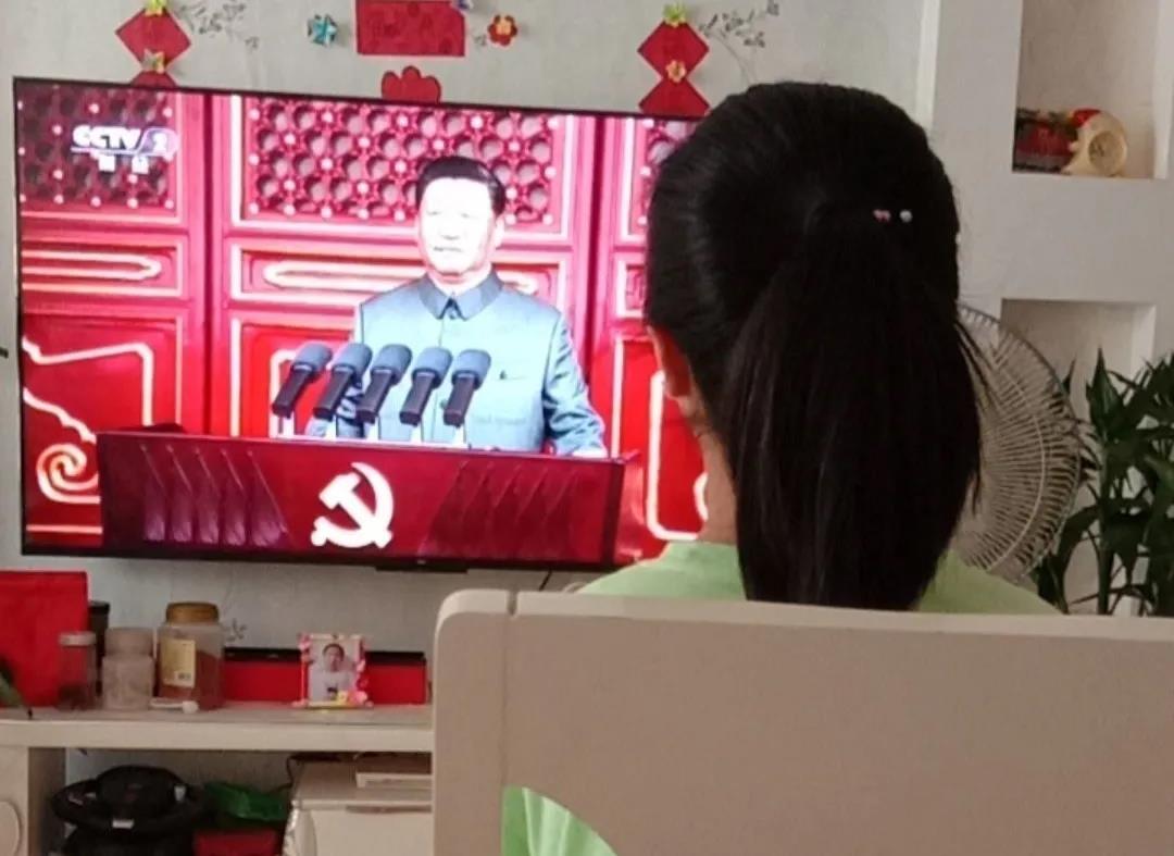 上午八点,庆祝中国共产党成立100周年大会在北京天安门广场隆重举行,三岔湖小学教师集中收听收看了大会盛况;全体同学们端坐在电视面前,和家人一起收听收看隆重的大会。