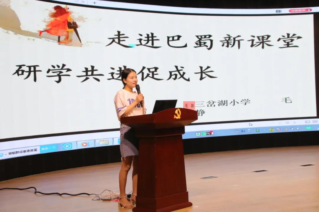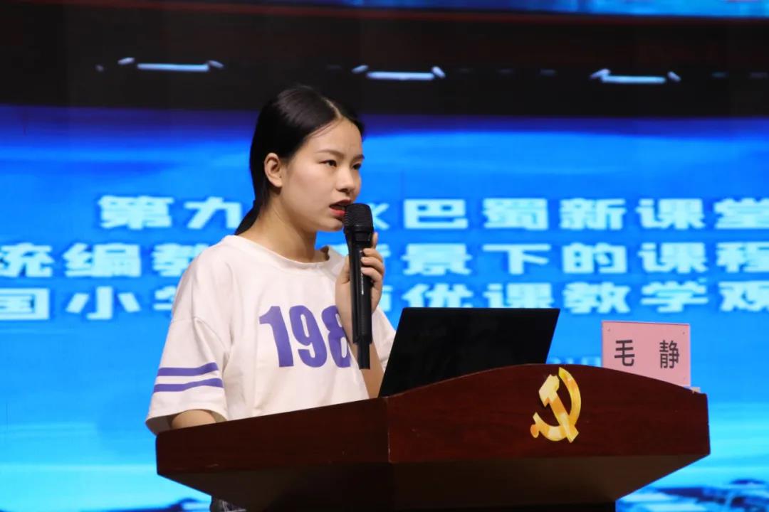 毛静老师分享了参加“巴蜀新课堂•名师优课教学观摩会”的体会。语文不能只有语文要素,要有人文、审美、情味、道德情感、价值观的统一体现,教育的终极目标是学生的发展和成长。