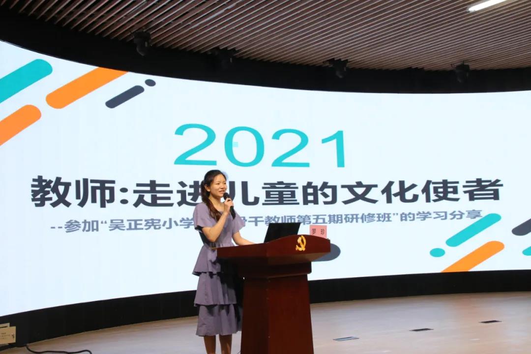 罗珍老师分享了吴正宪小学数学骨干教师研修班的学习感悟。罗老师指出,数学教师要聚焦数学核心素养,改变学、教方式,重视常规评价等;要关注情感因素,给学生更多关爱。